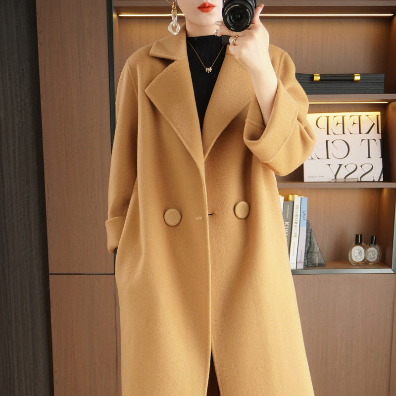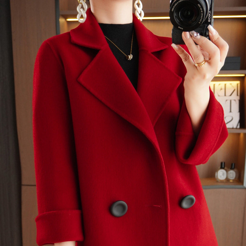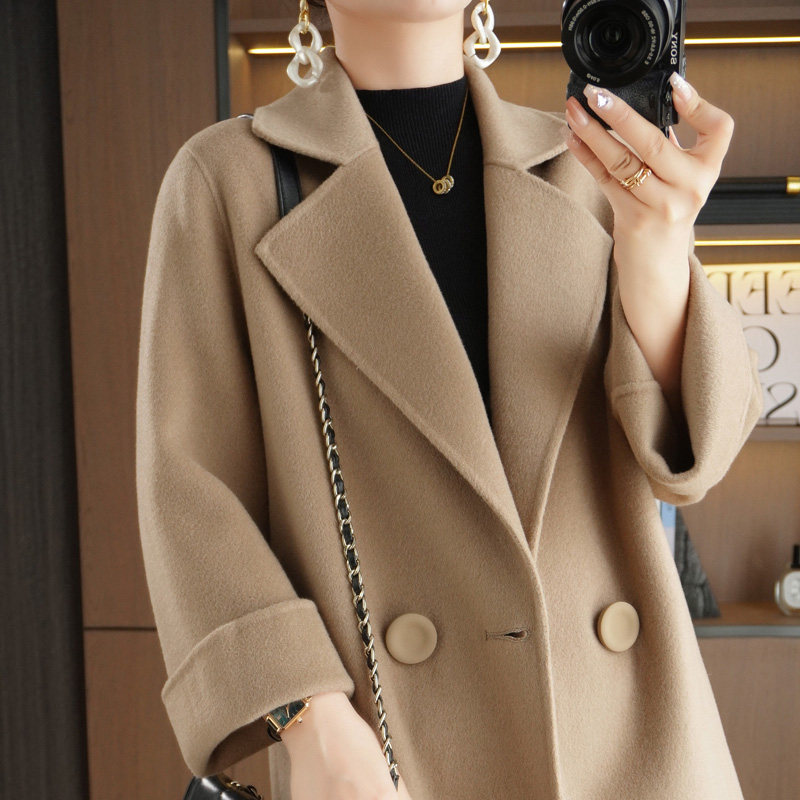 23秋冬新款高端双面羊绒大衣女100%羊毛小个子气质中长款毛呢外套