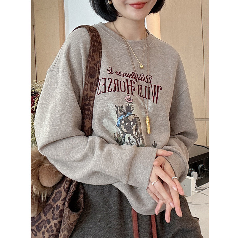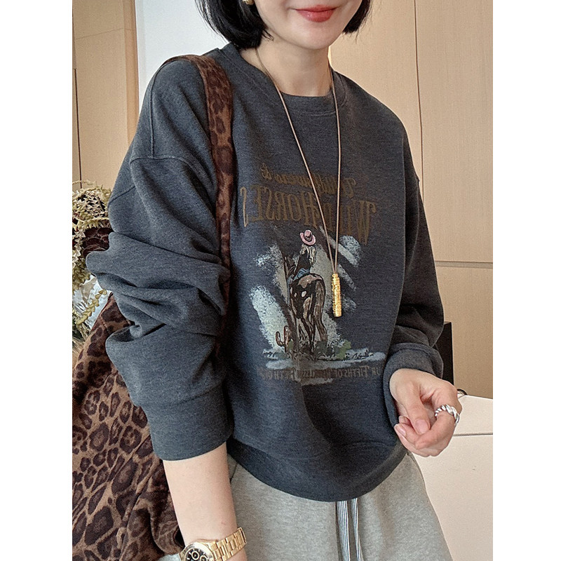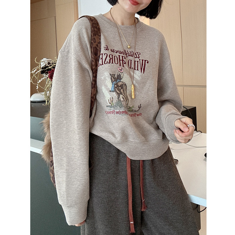 巨好看的早秋无帽圆领卫衣女款2026新款爆款时尚洋气宽松短款上衣