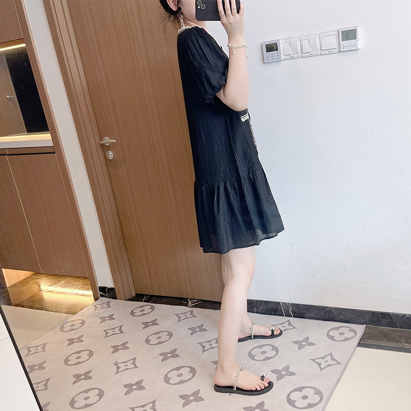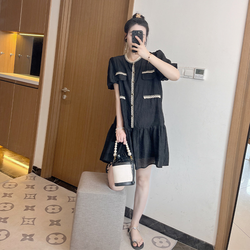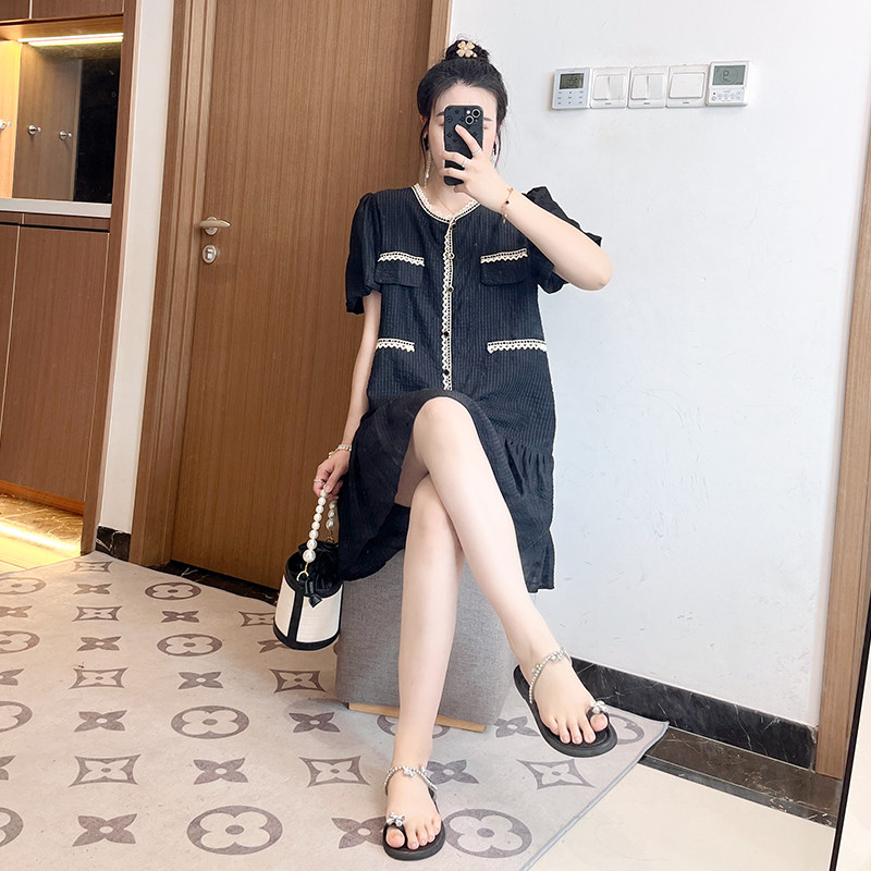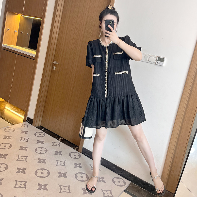大码法式小香风连衣裙女夏季胖mm遮肉显瘦时尚休闲小个子别致裙子