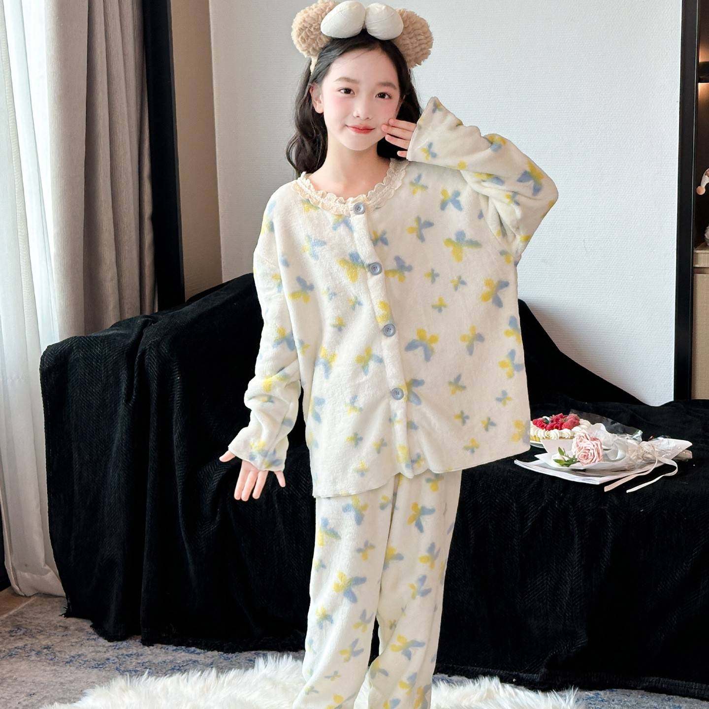 女童冬装睡衣2025新款儿童冬季法兰绒套装初中生女孩珊瑚绒家居服