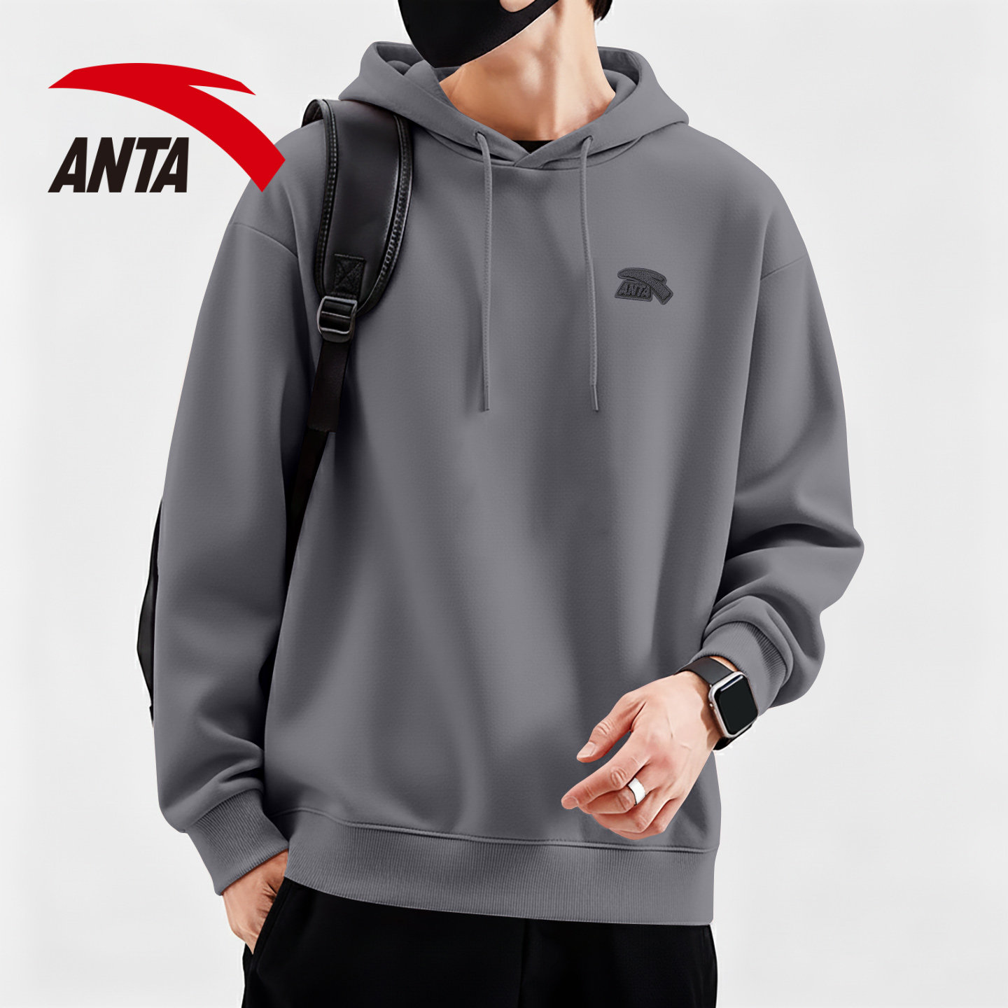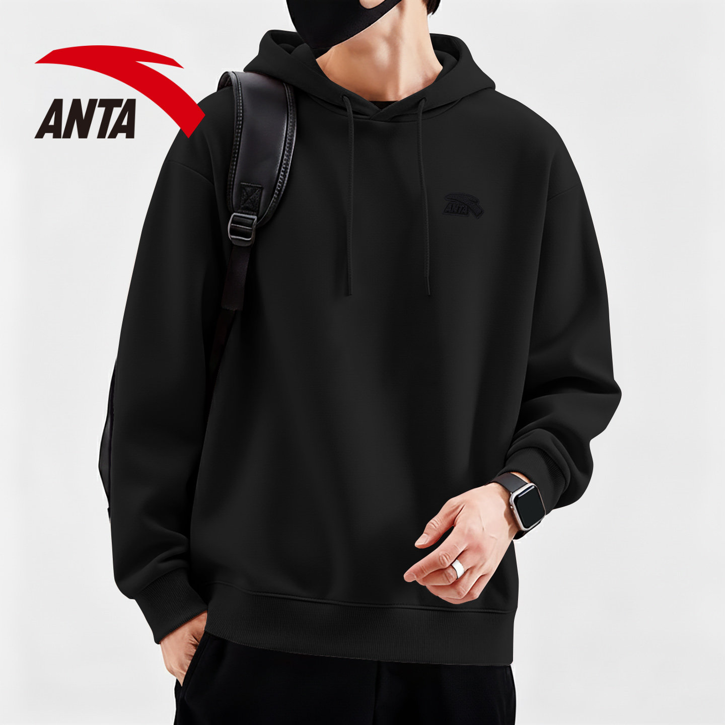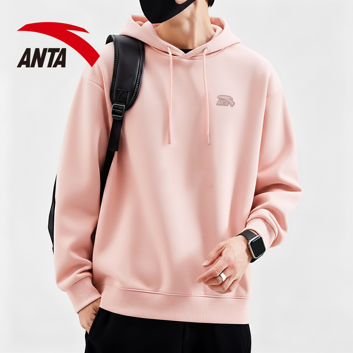 安踏连帽卫衣男青少年学生潮流休闲宽松红色上衣男款秋冬加绒外套