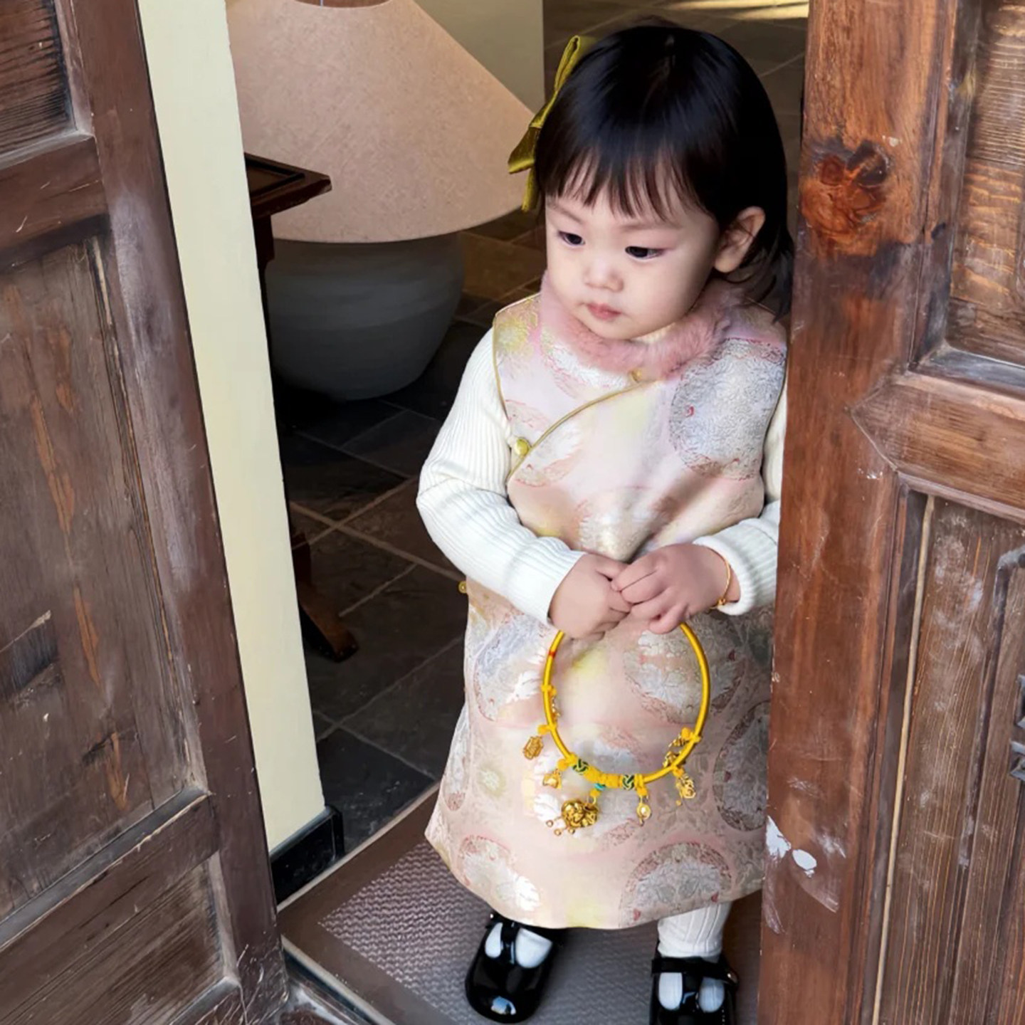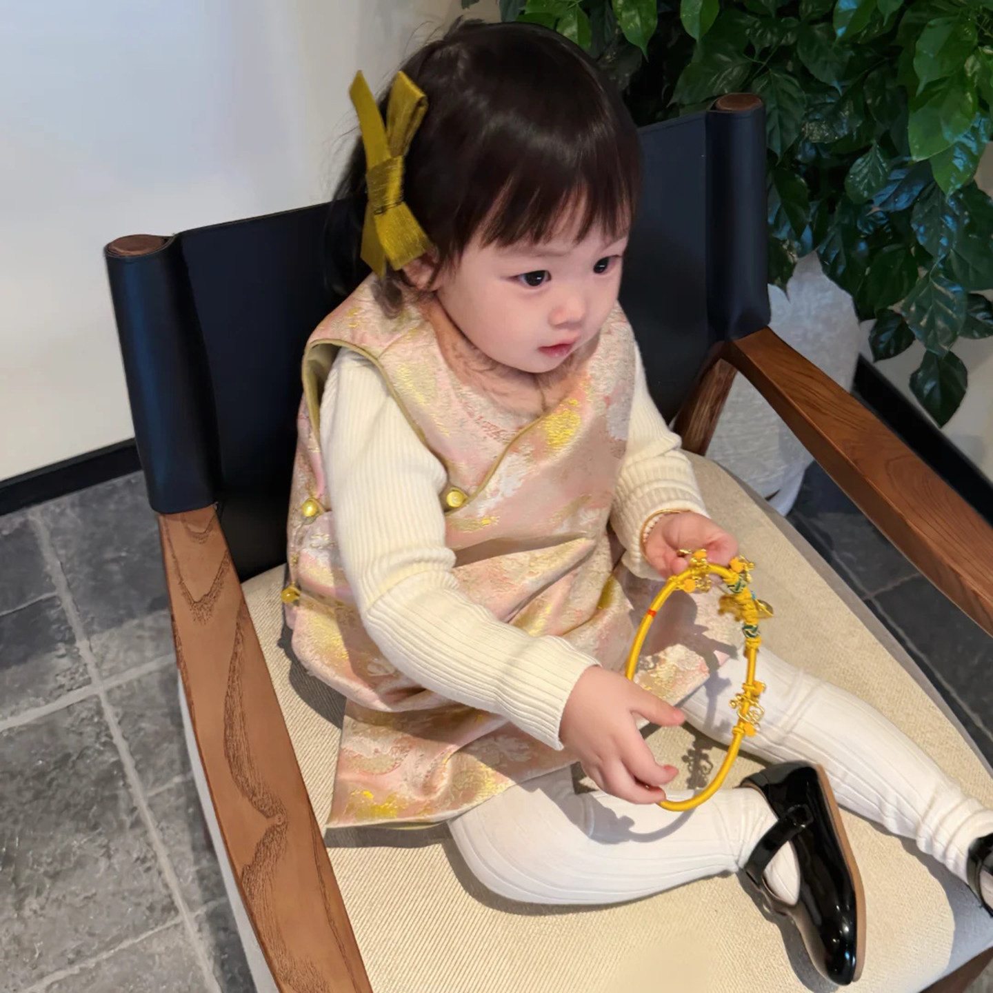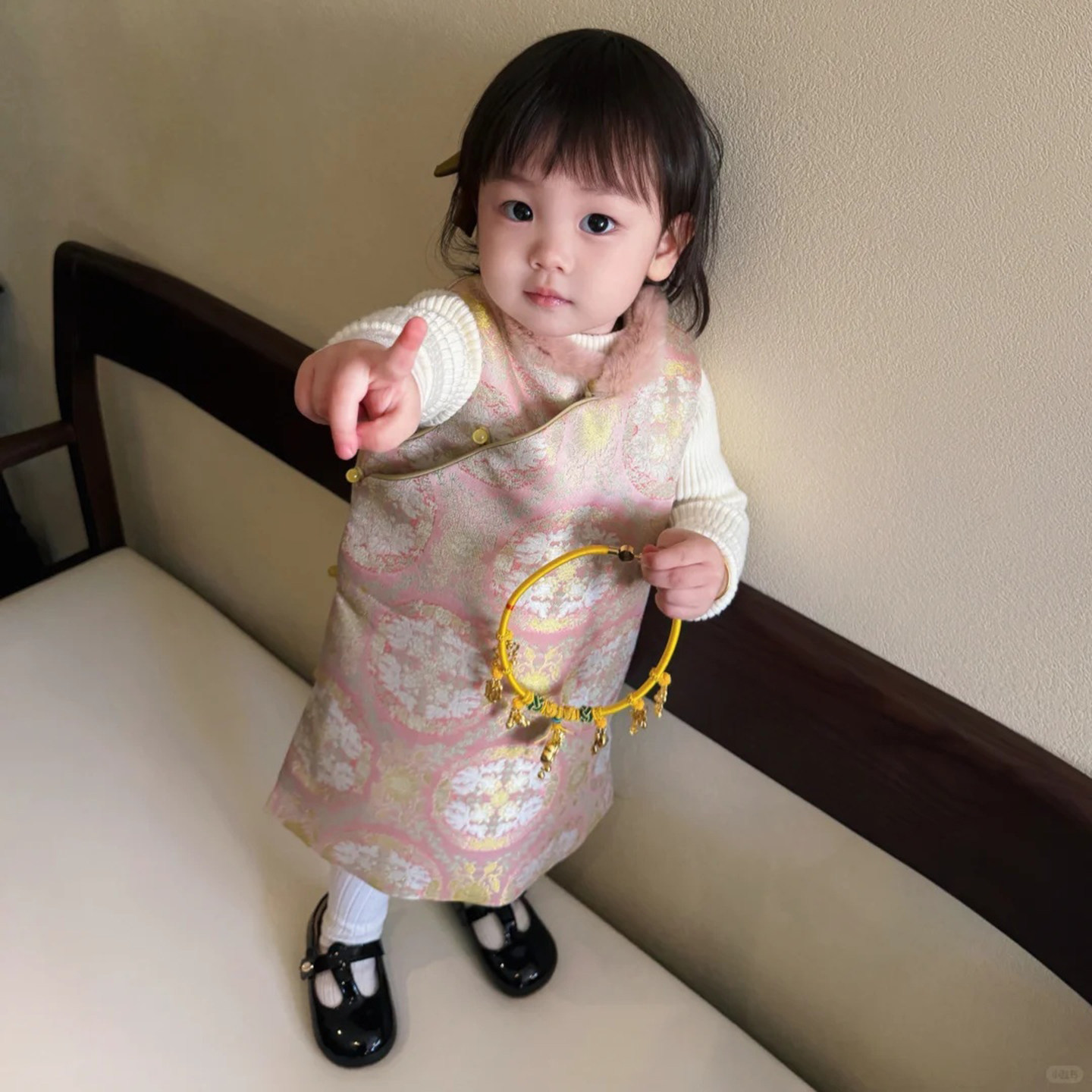 女童春款新中式连衣裙2026新款洋气儿童拜年服时尚甜美印花旗袍裙