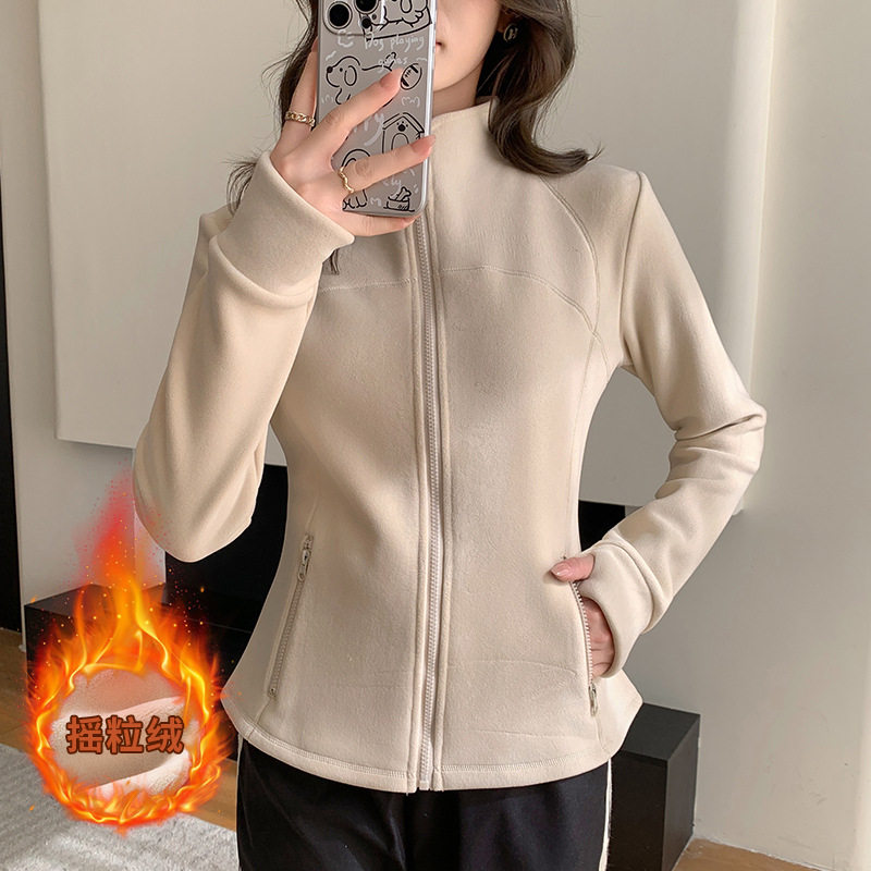 立领双面摇粒绒外套女款2025秋冬加绒加厚修身显瘦保暖长袖卫衣