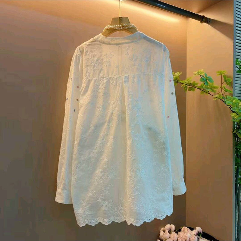 2026春季新款清新刺绣长袖宽松百搭衬衫大码女装胖mm时尚减龄上衣