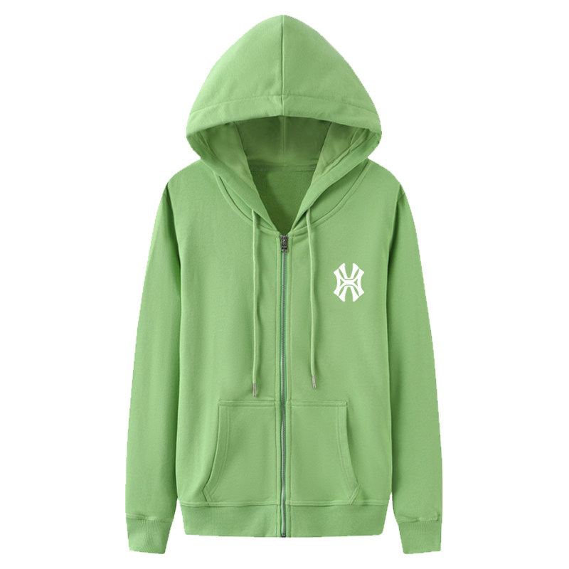 2024春秋薄款绿色连帽拉链开衫卫衣印花女款街头休闲运动长袖外套