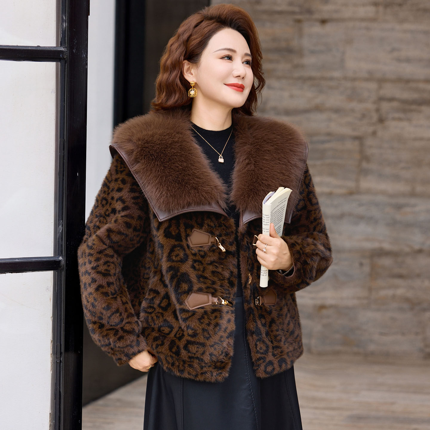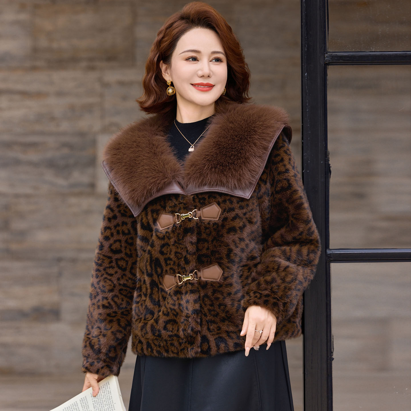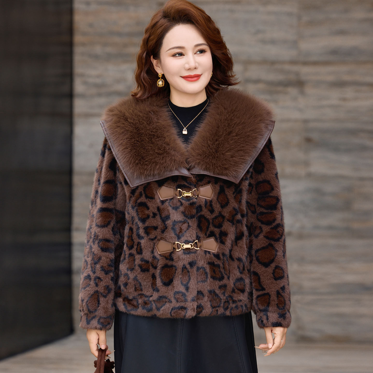 新款妈妈冬装皮毛一体外套中老年女士装时尚洋气保暖仿水貂绒大衣