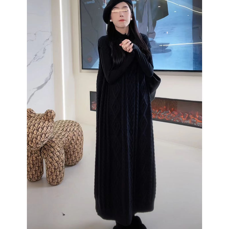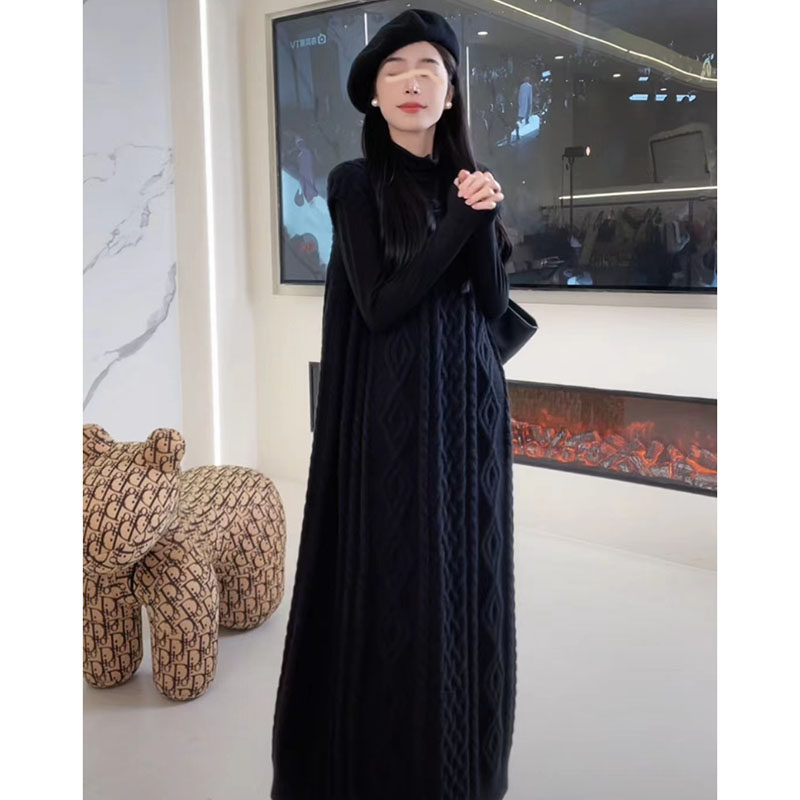 慵懒风加厚麻花马甲毛衣裙秋冬配大衣针织背心连衣裙宽松长款外穿