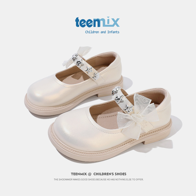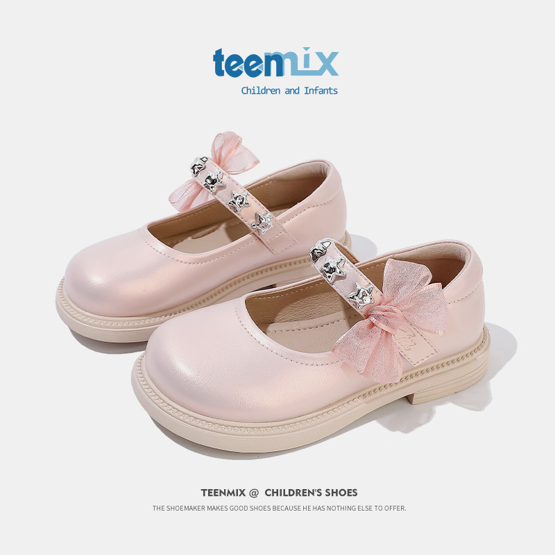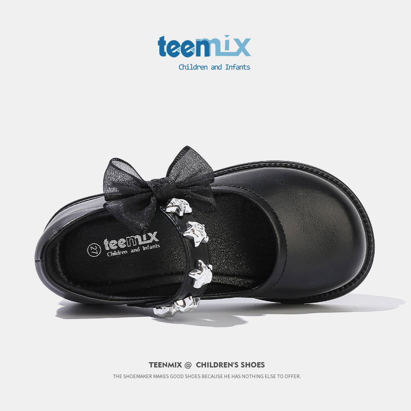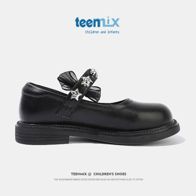 天美意女童2026春季新款公主鞋黑色软底儿童女宝洋气小皮鞋配裙子