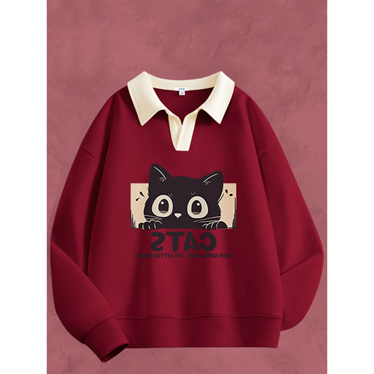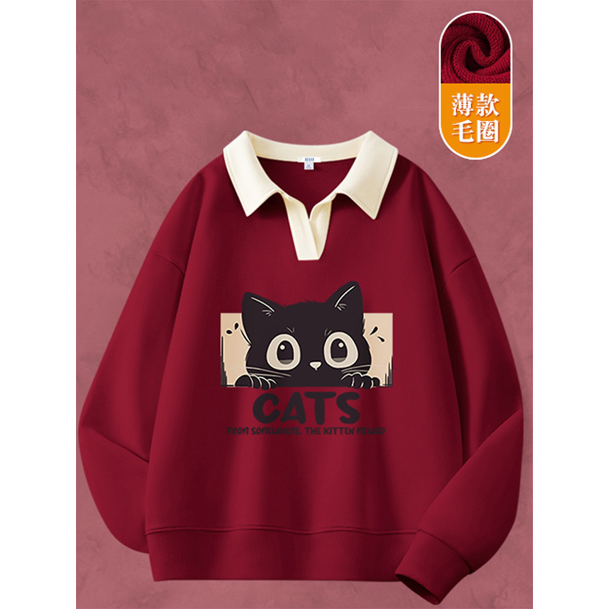新品红色卫衣女款春秋款2026新款设计感polo领外套上衣外套小个子