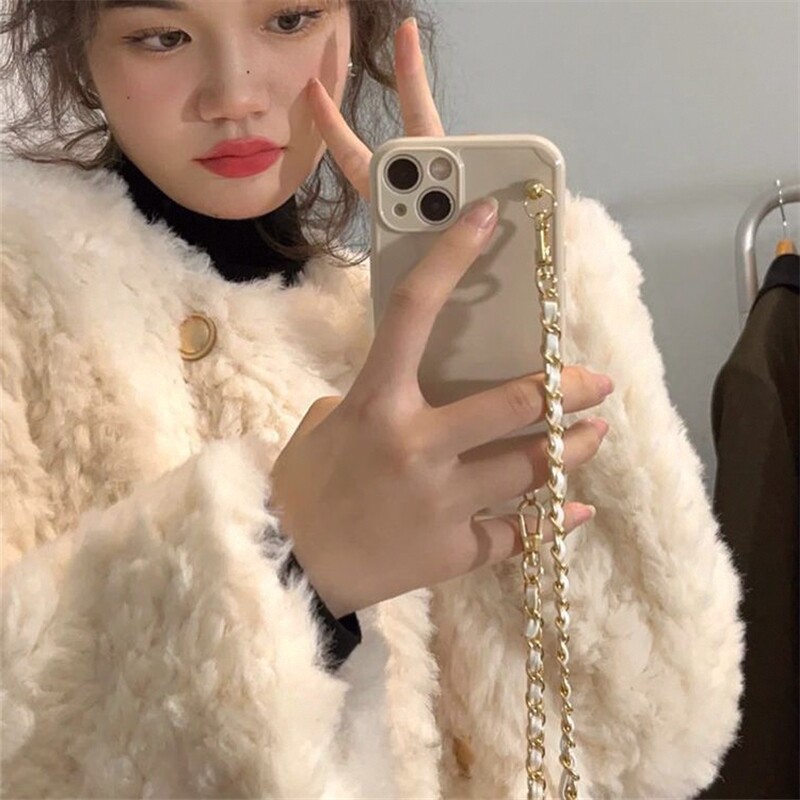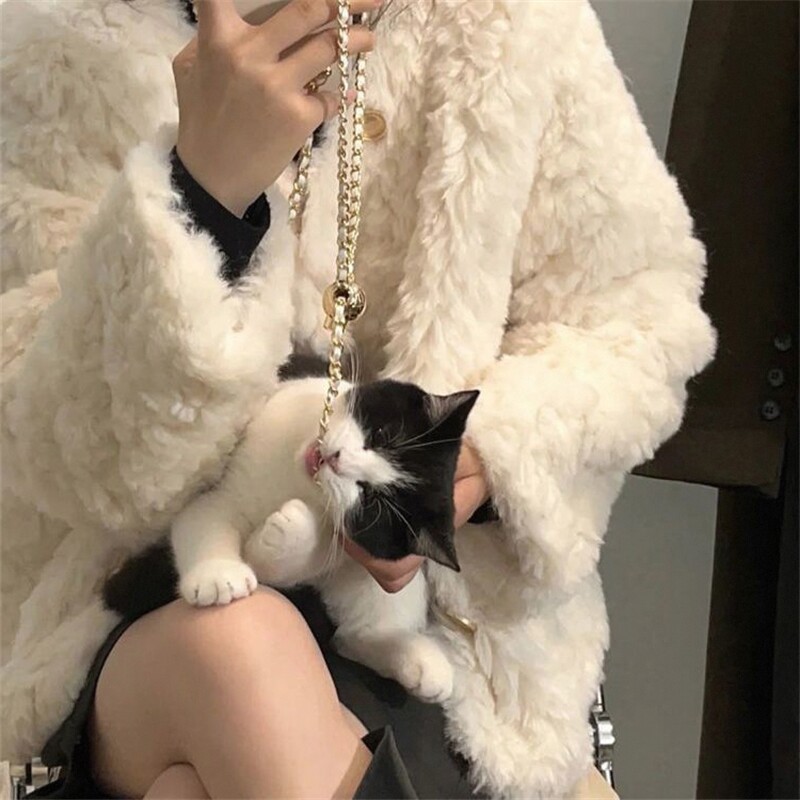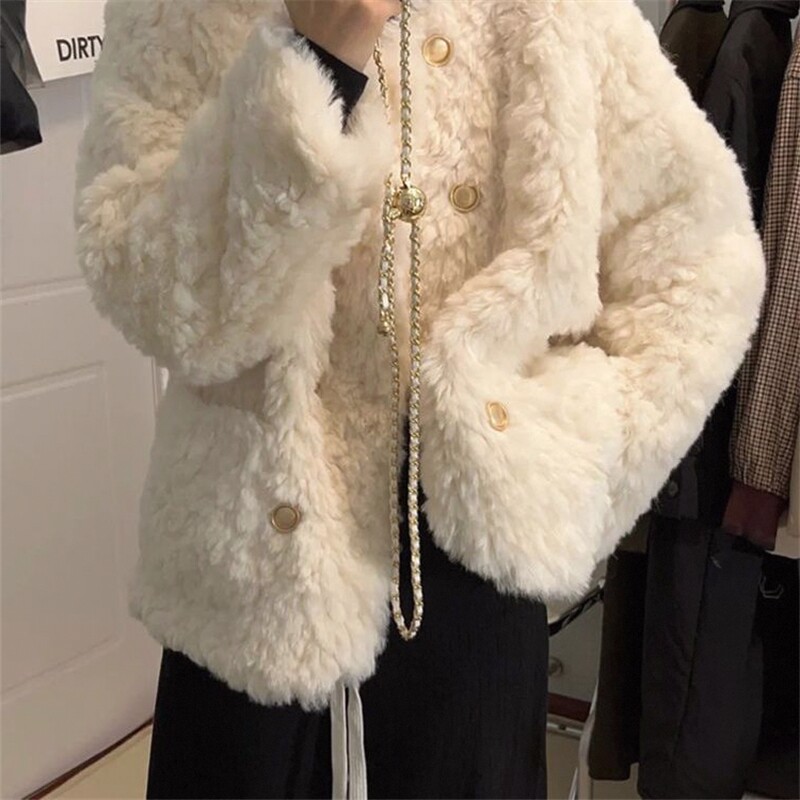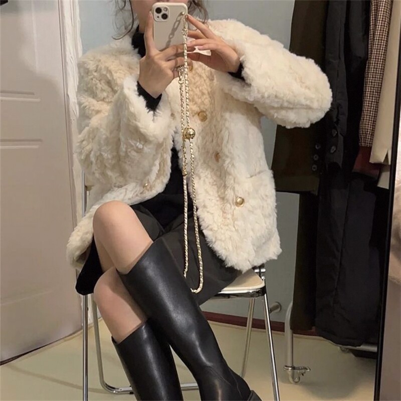 小香风刷花兔毛外套女2026冬季新款小个子潮宽松加棉毛毛上衣棉服
