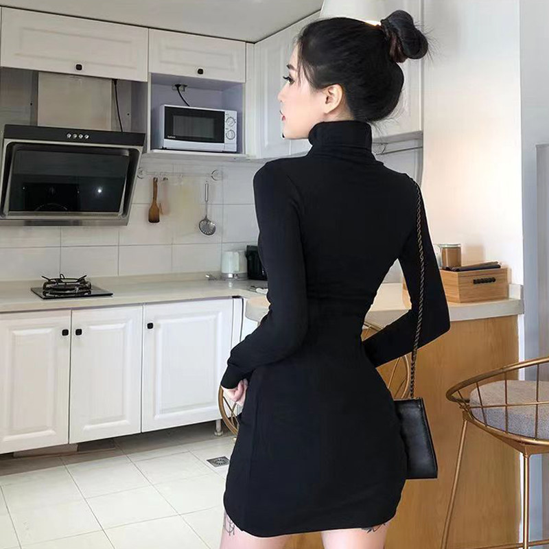 秋冬大码针织高领连衣裙女2022新款加绒加厚内搭中长款包臀打底衫