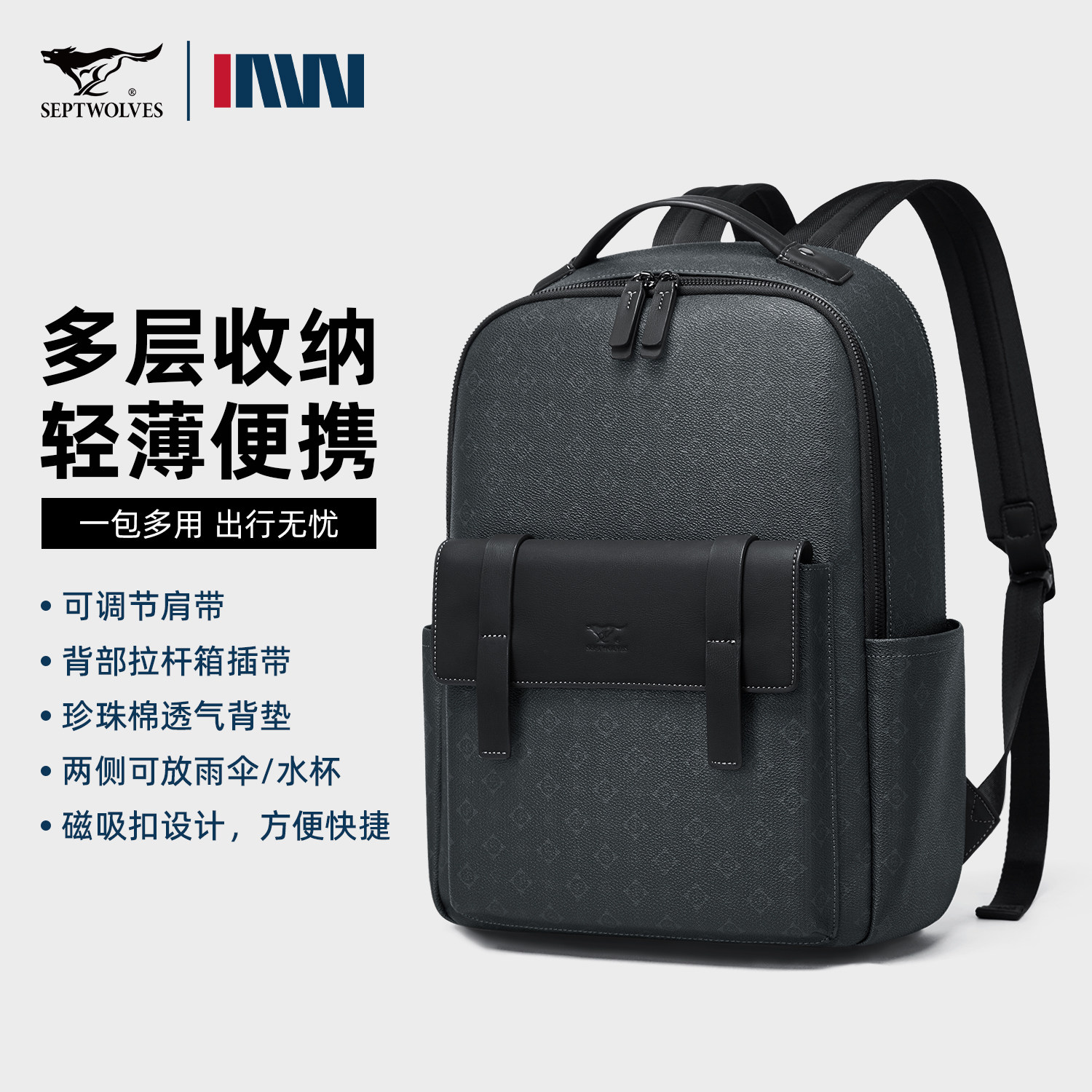311线报网描述:七匹狼双肩包男士背包商务大容量旅行包轻便