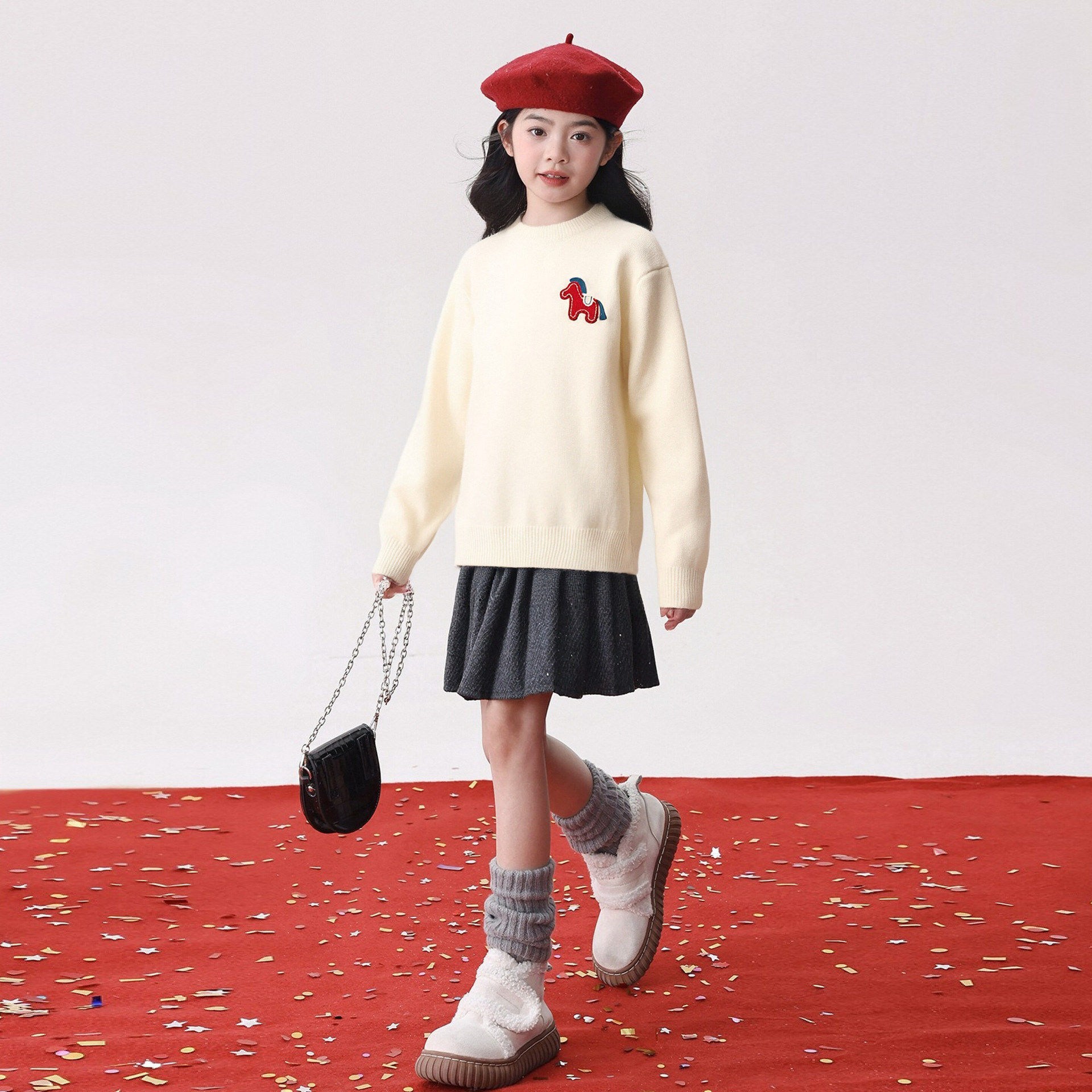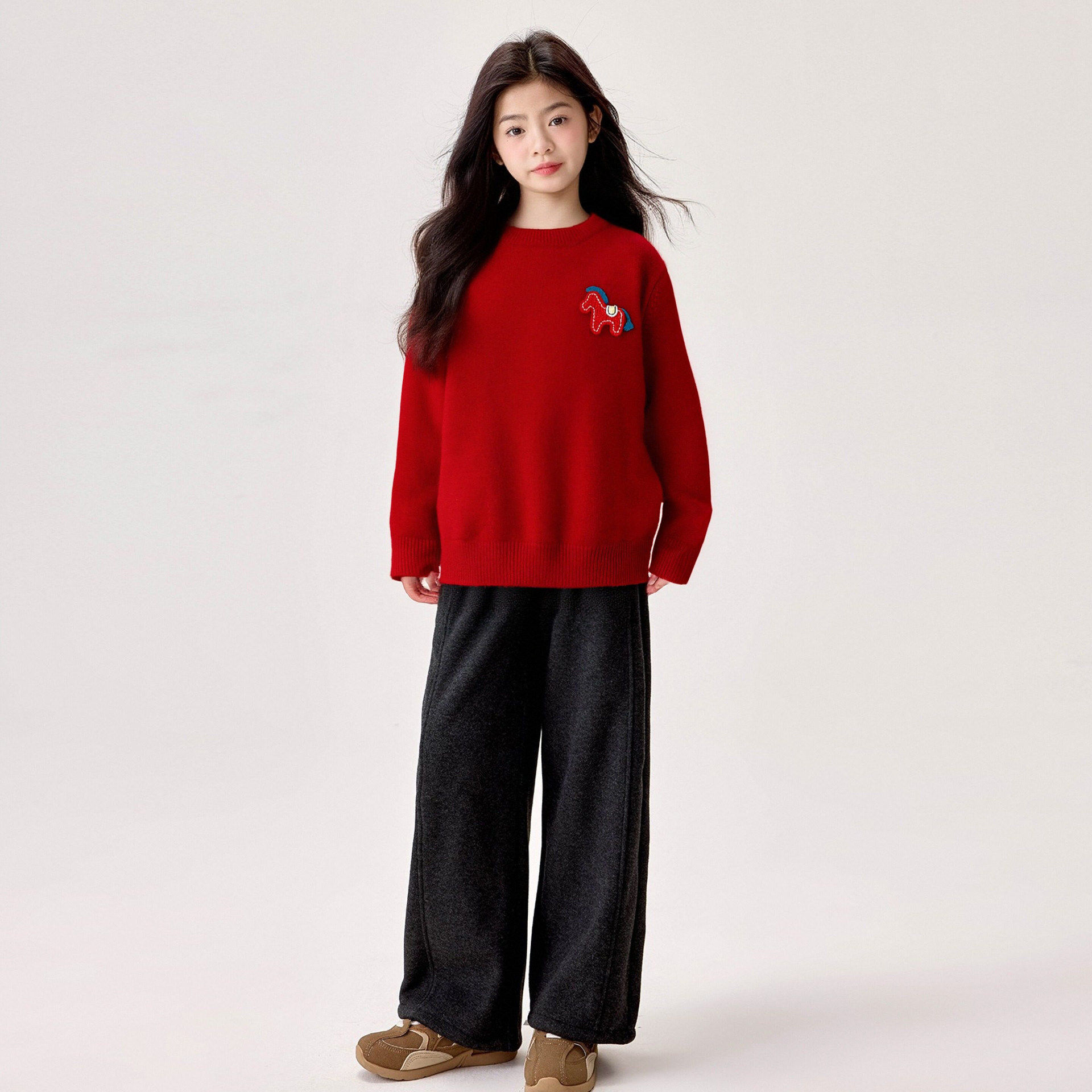 女童马年红色毛衣秋冬2026新款女孩本命年儿童新年冬季大童针织衫