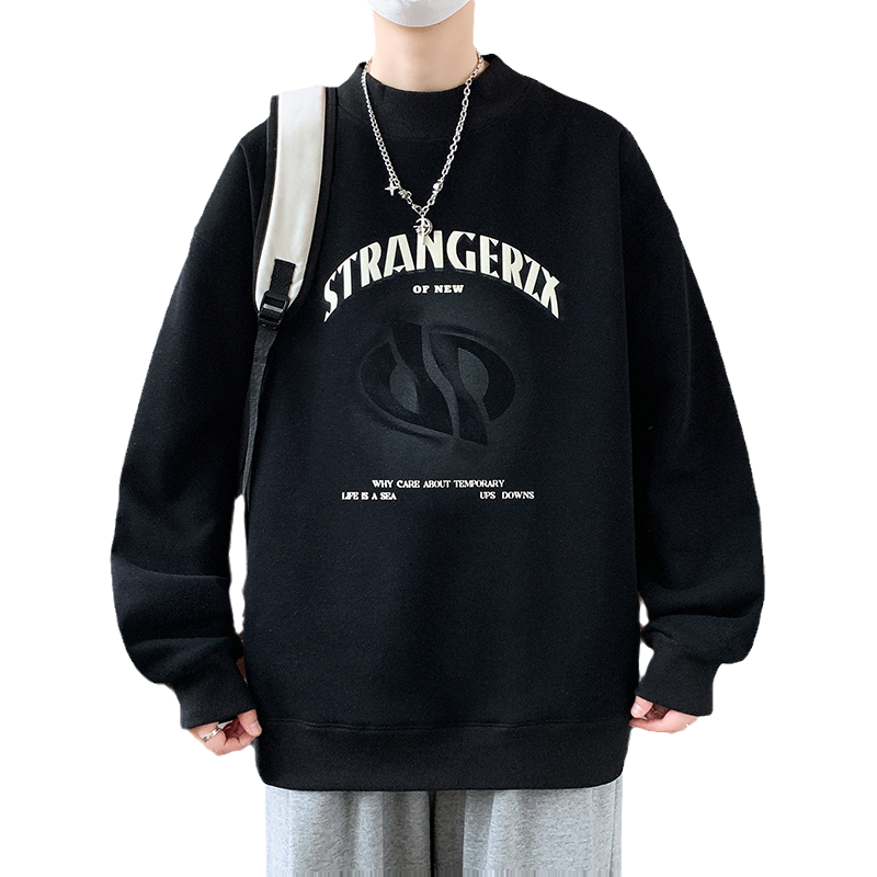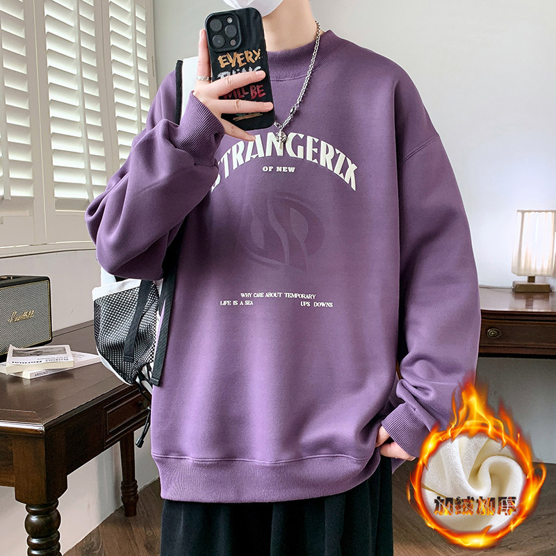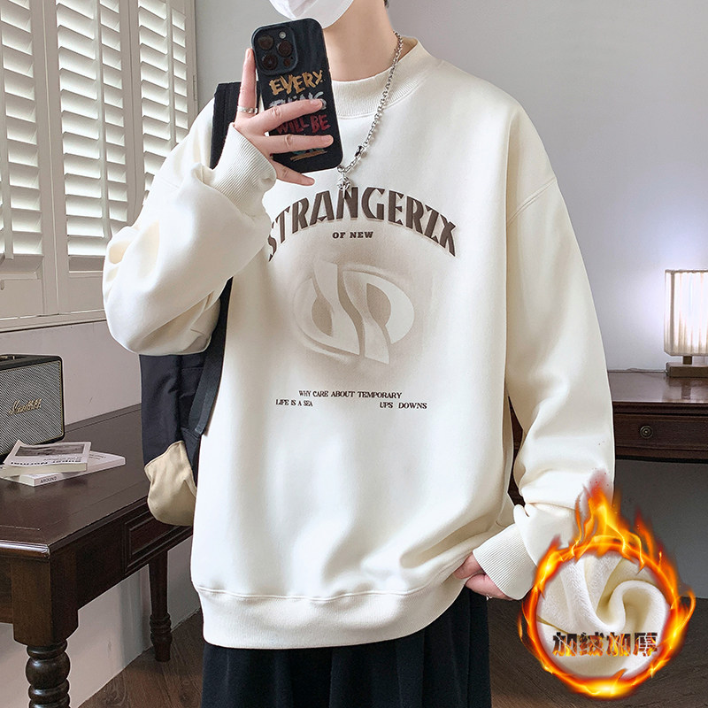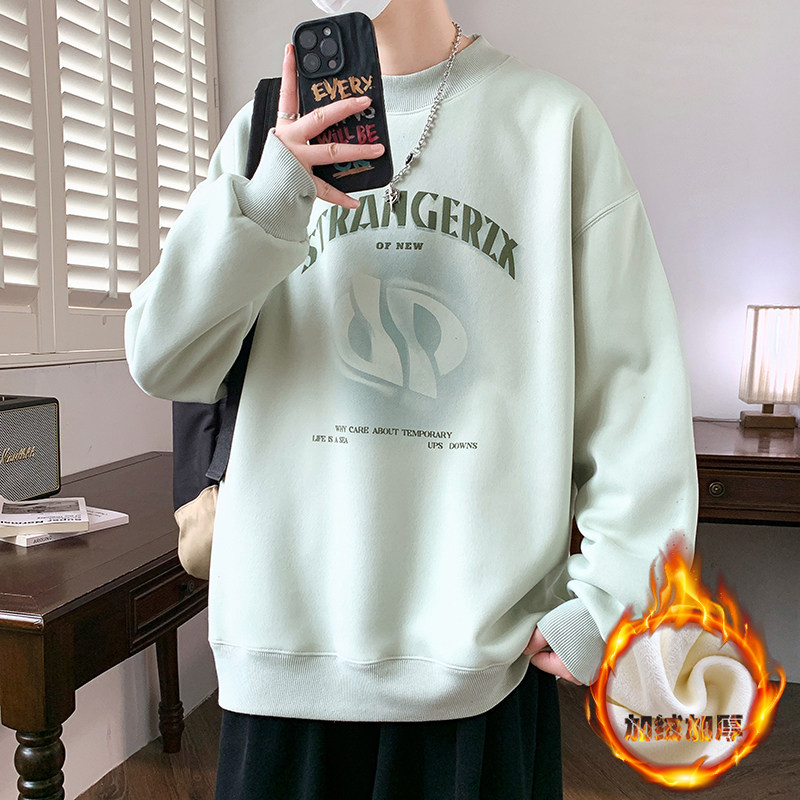 圆领卫衣秋冬季新款男孩初中学生青少年大童加绒加厚男装打底衫潮