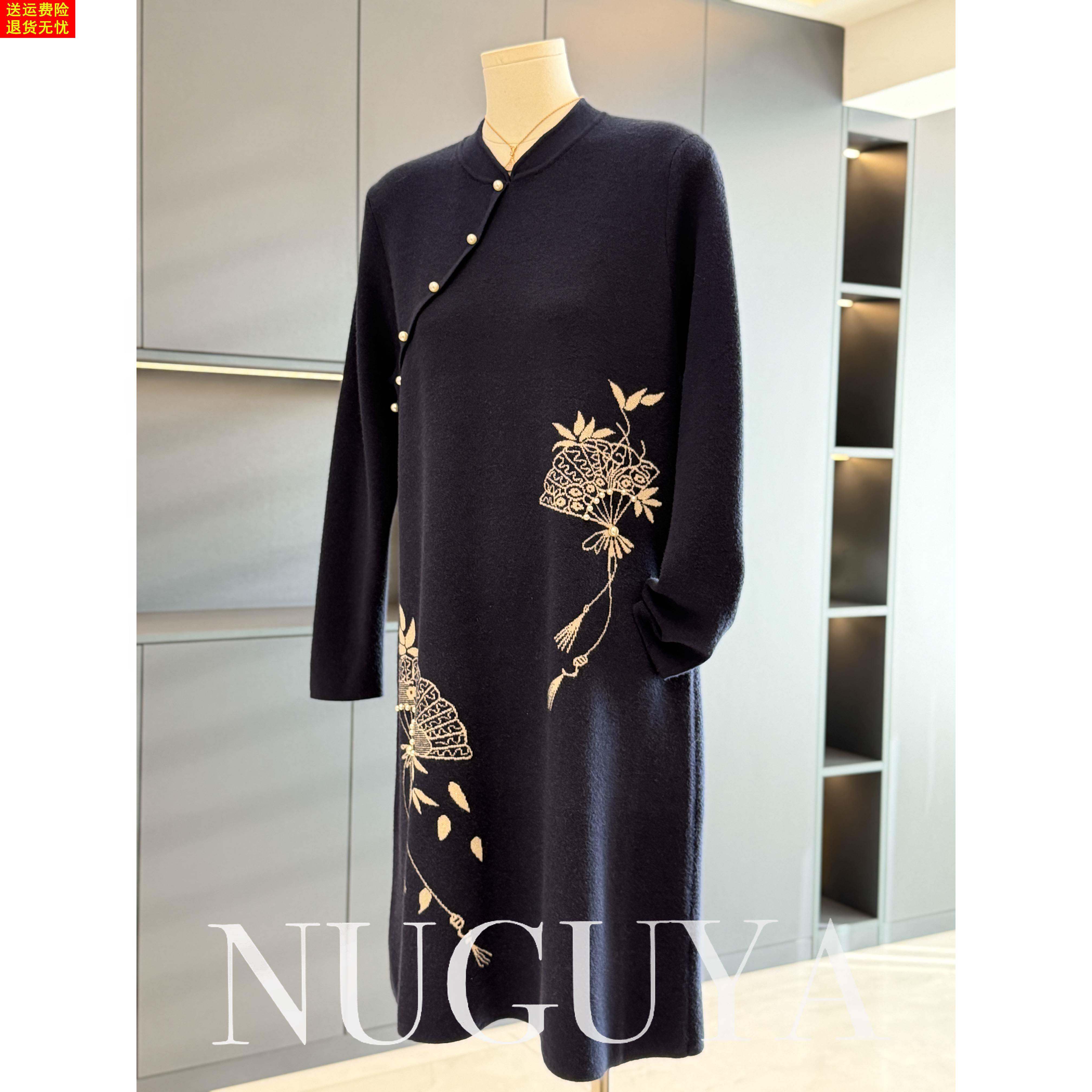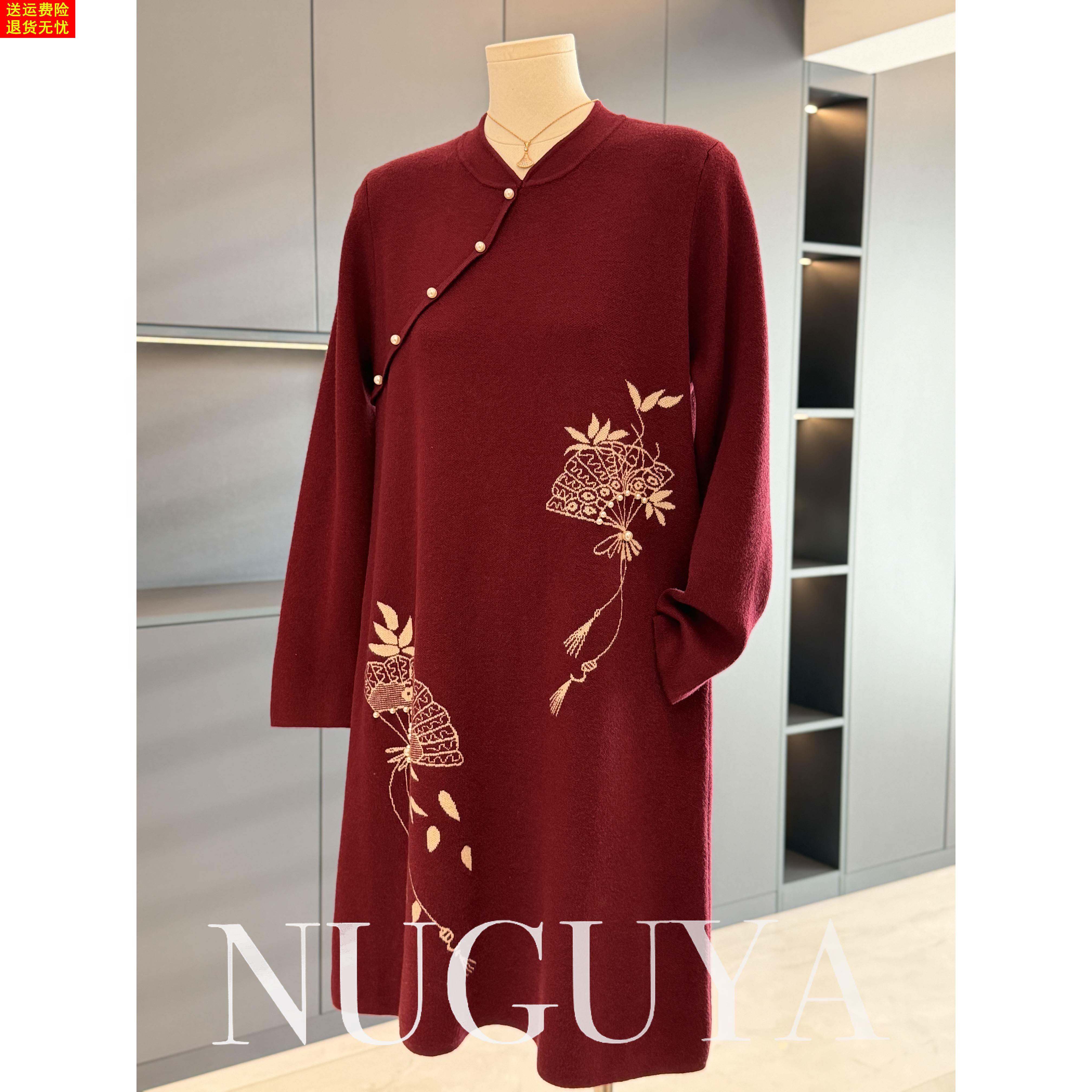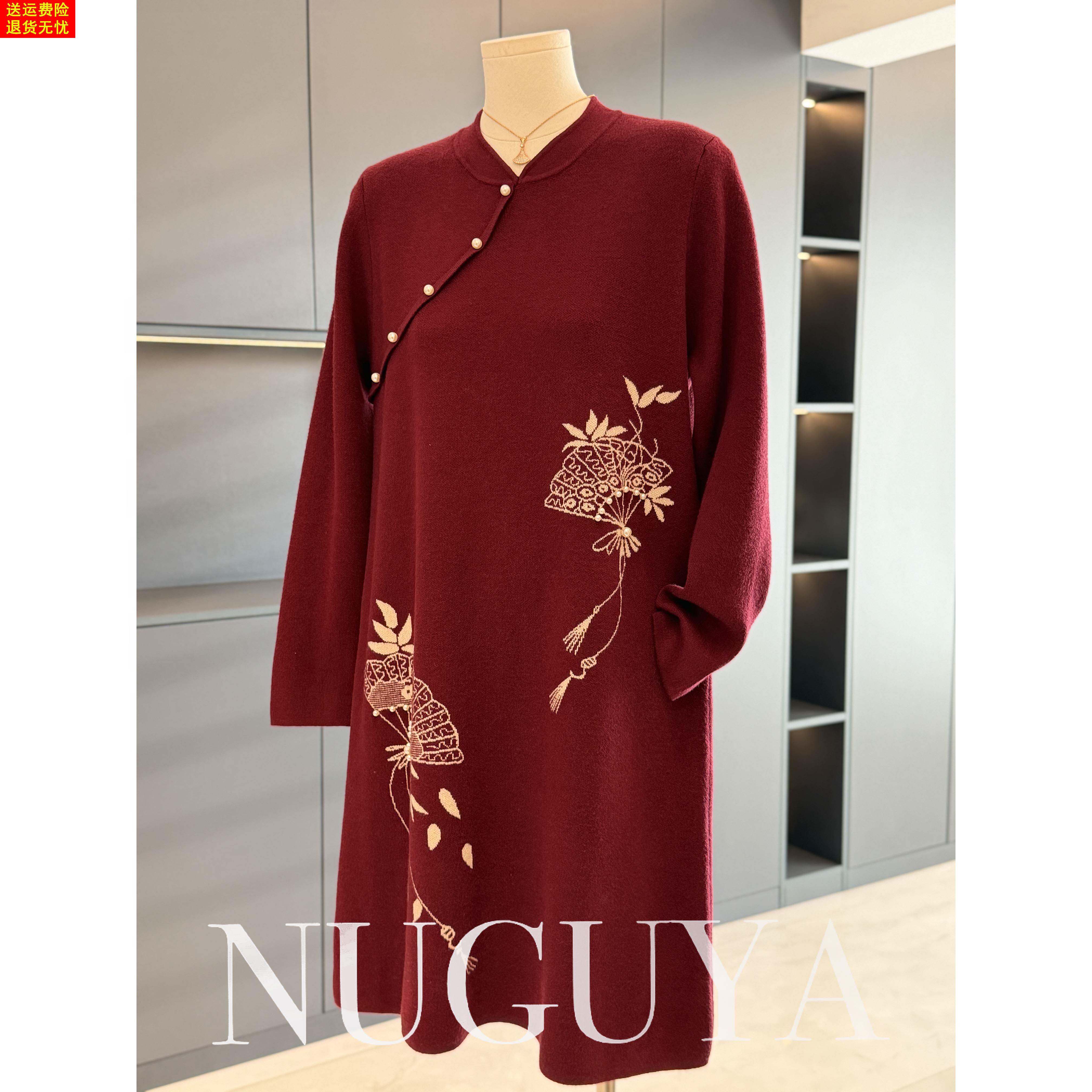 中式国风妈妈装针织连衣裙女冬装新款气质百搭中长款毛衣裙中老年