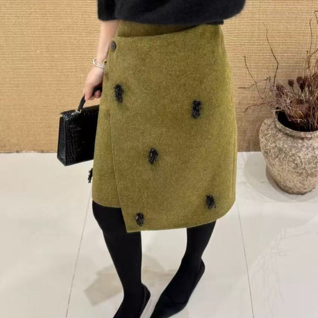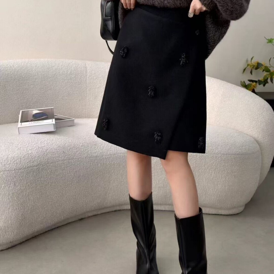 2026年早春新款设计感重工钉珠显瘦半身裙