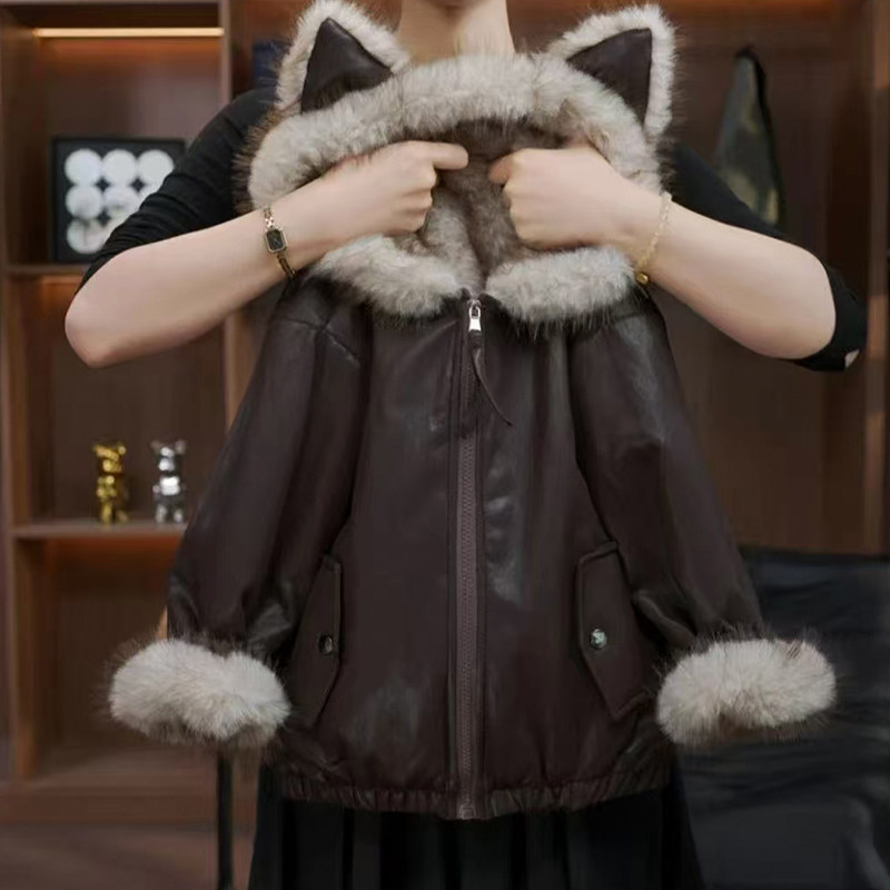 女童外套冬装2026新款洋气儿童韩版时髦加绒猫耳皮衣女孩冬季上衣