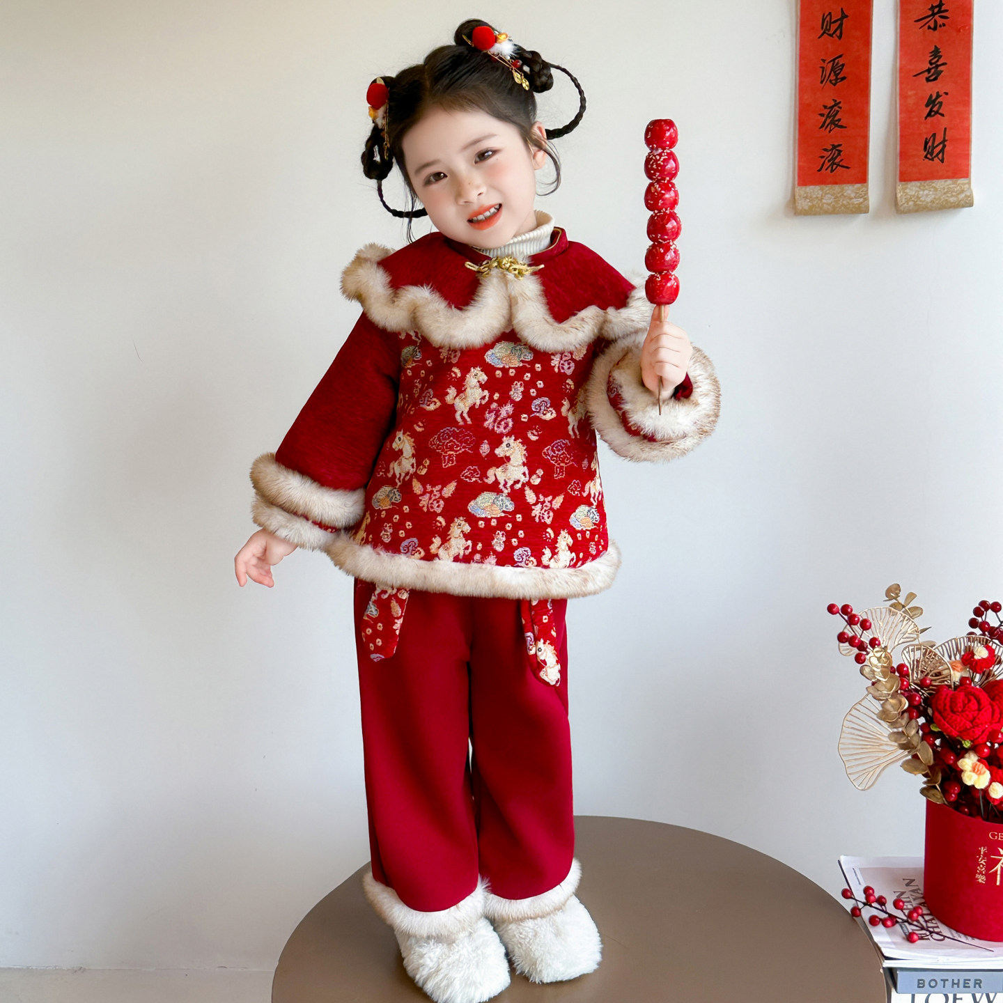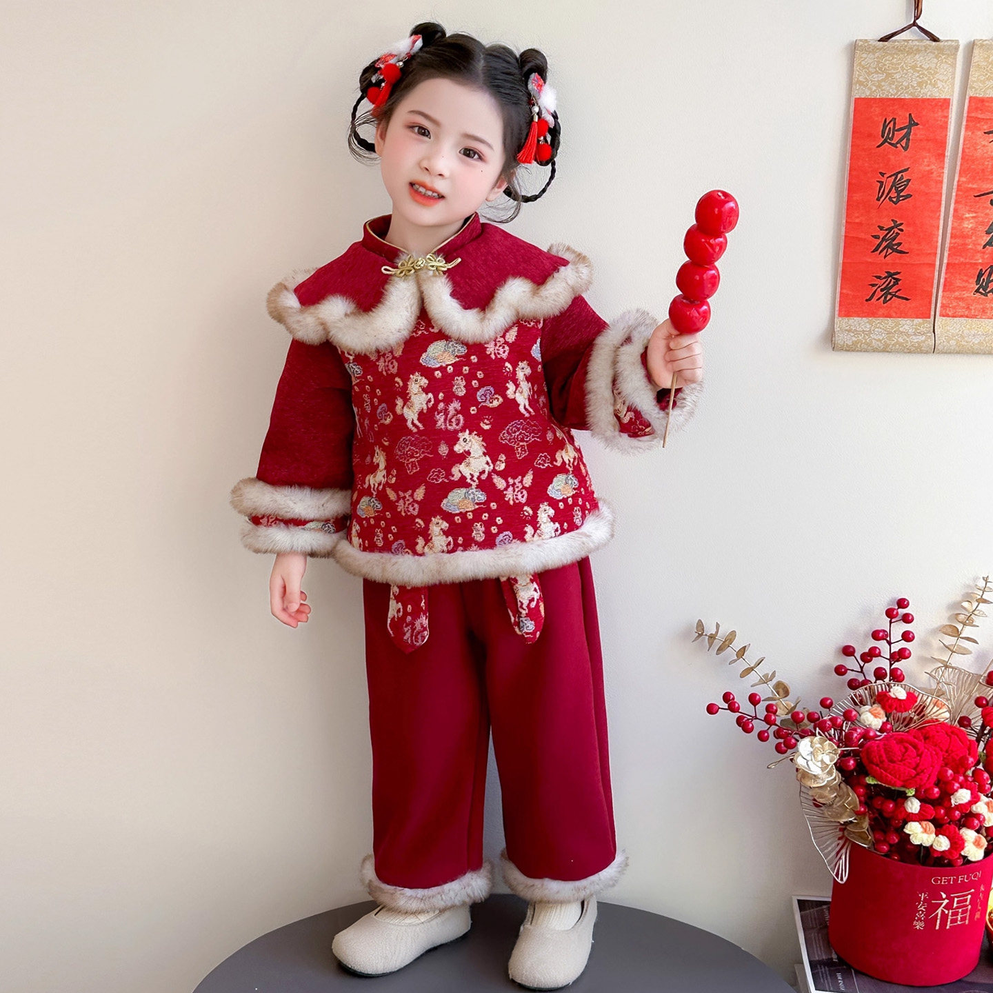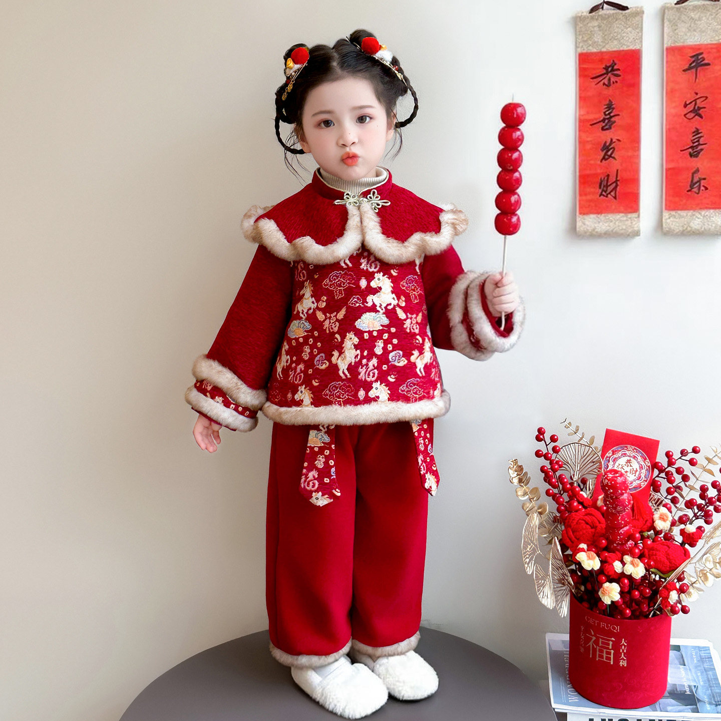 女童拜年服冬季2026新款儿童新年小马女宝宝红色过年衣服套装冬装