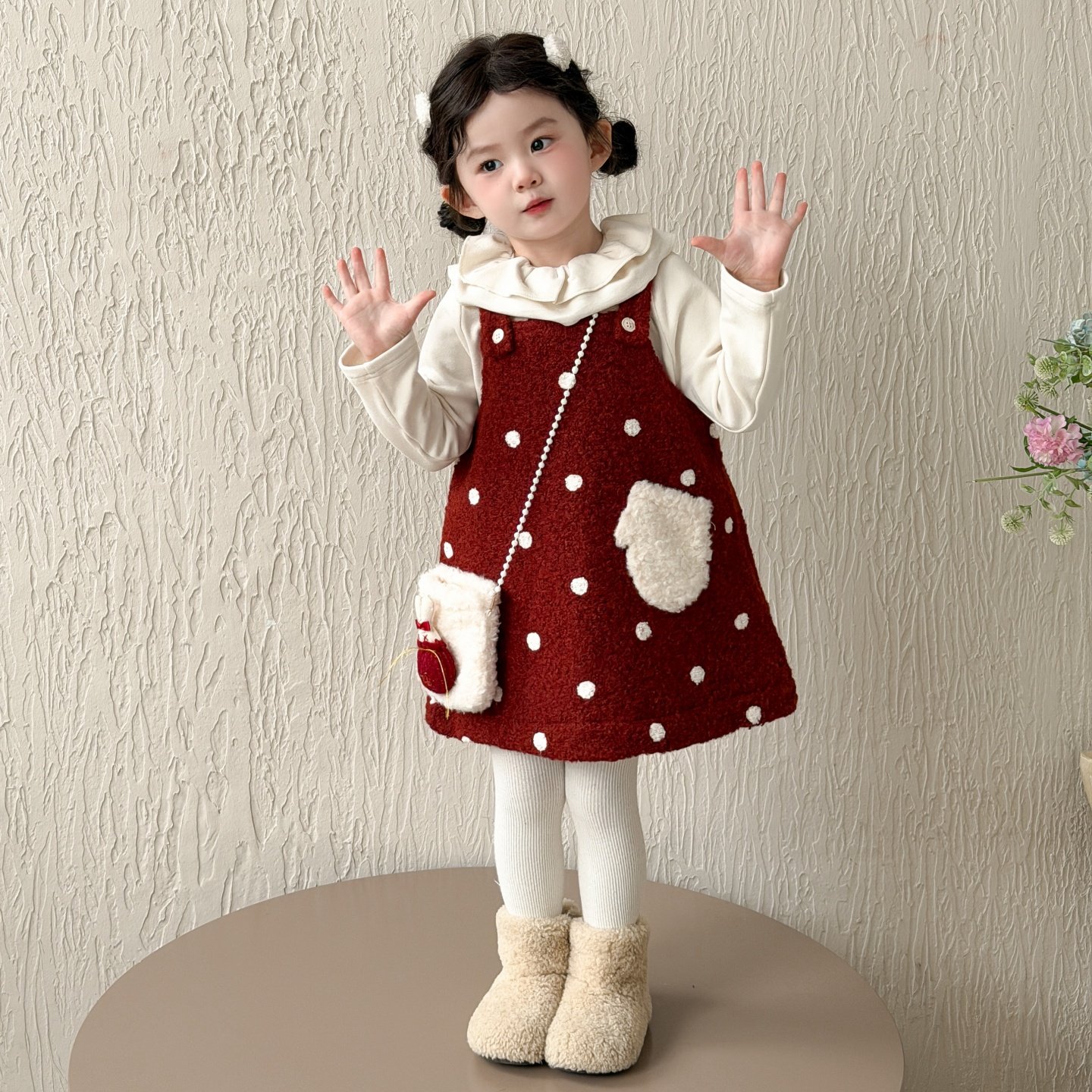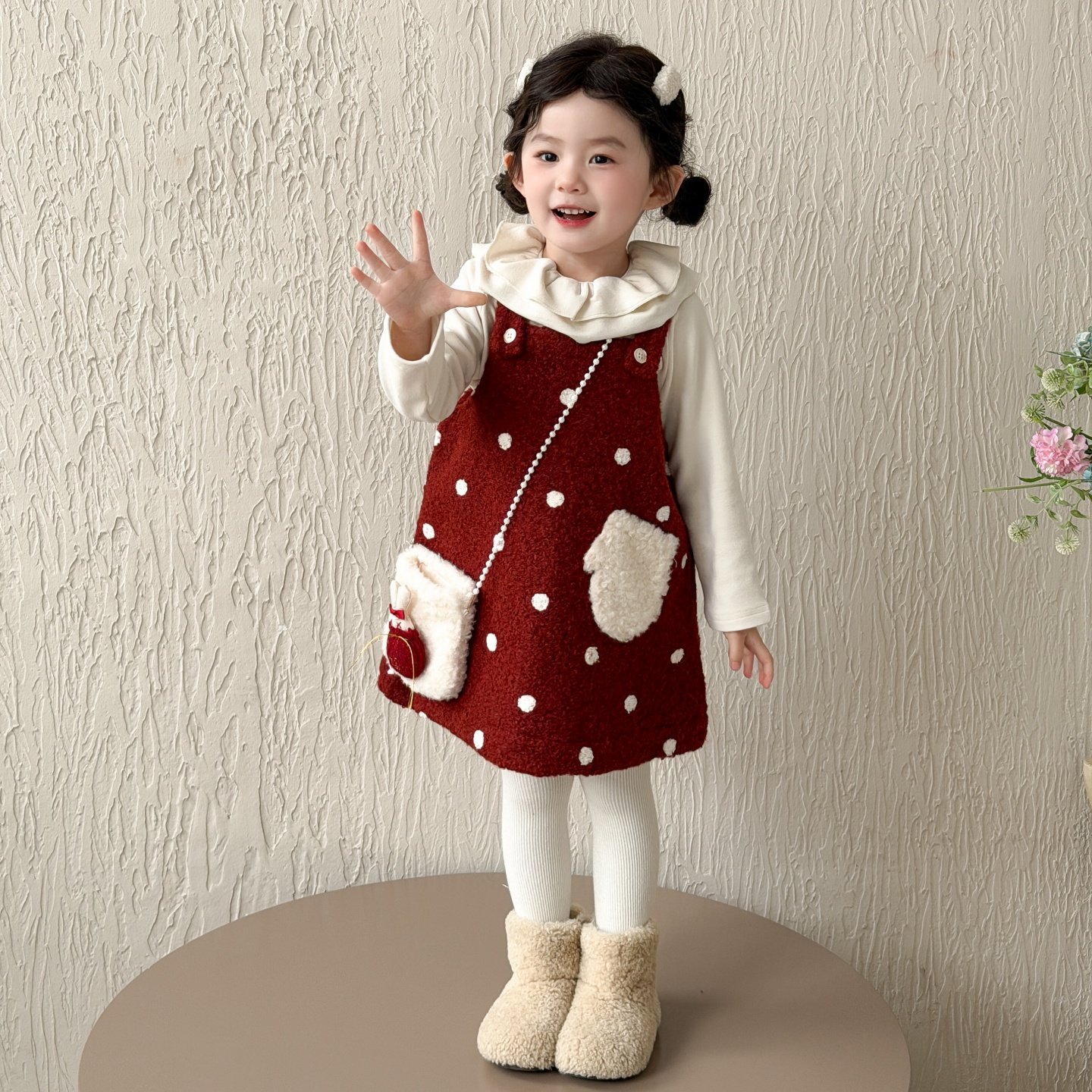 女童加厚连衣裙套装儿童红色秋冬季女宝宝裙子新年过年衣服拜年服