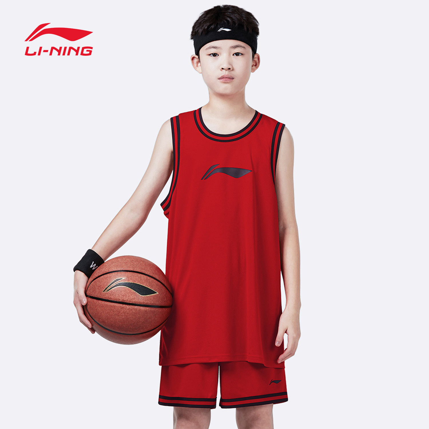 李宁儿童篮球服套装男童夏季大童背心男生短裤速干球衣运动训练服