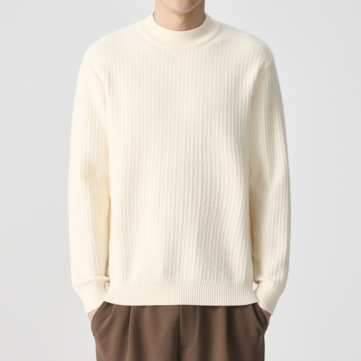 男士小半高领毛衣中领针织衫男款修身加厚纯色秋冬季内搭打底衫