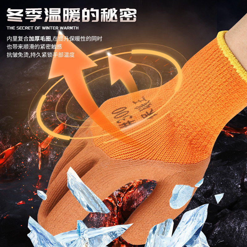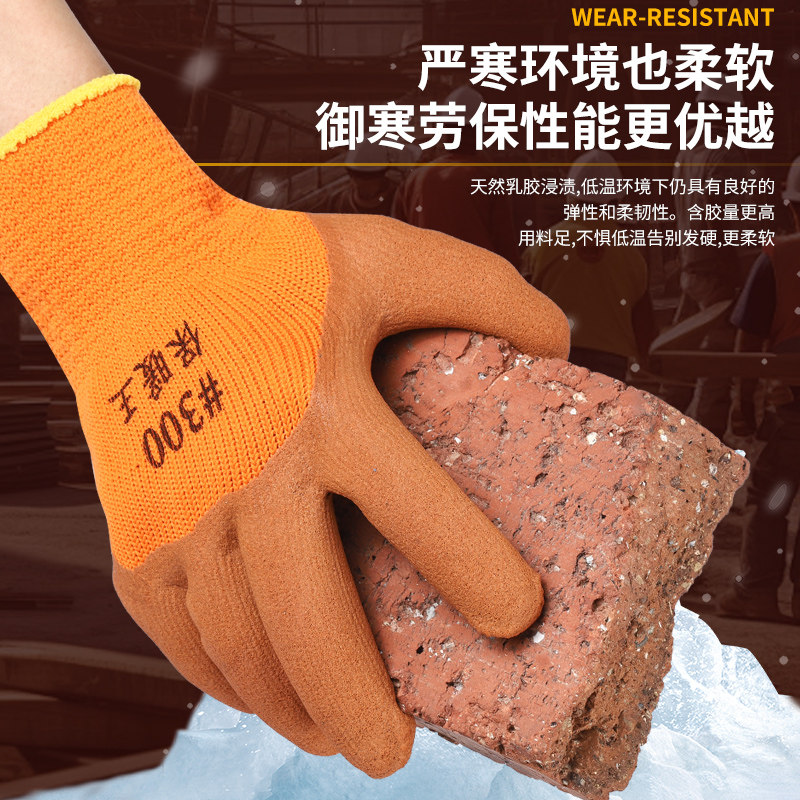 加厚毛圈手套劳保耐磨橡胶防滑工作工地冷库冬季保暖加绒棉手套