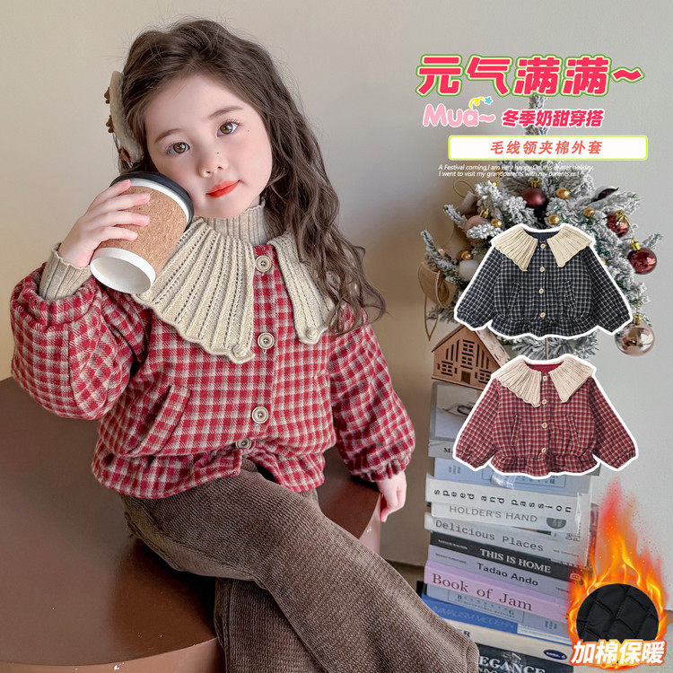 女童秋冬夹棉外套2025新款时髦娃娃领加厚小香风上衣儿童冬季棉服