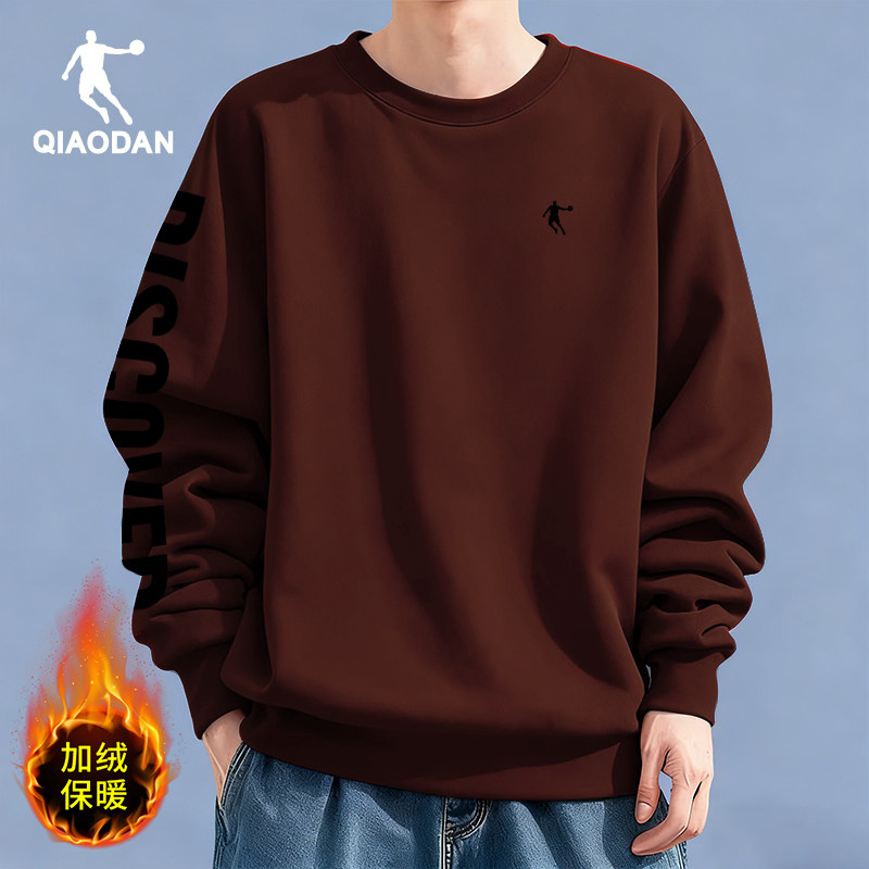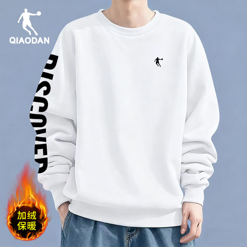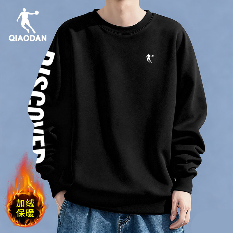 乔丹加绒卫衣男款2025冬季新款加厚保暖圆领上衣青少年宽松运动服
