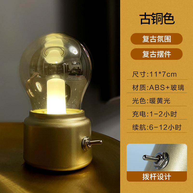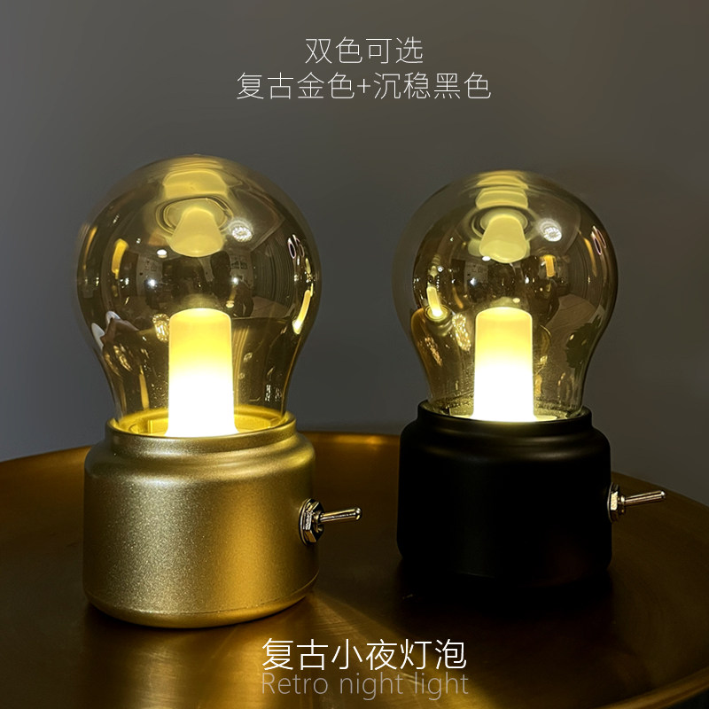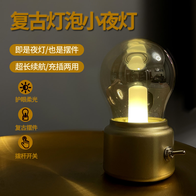 极速复古灯泡创意摆件小夜灯ins风卧室床头台P灯充电式酒吧桌面氛