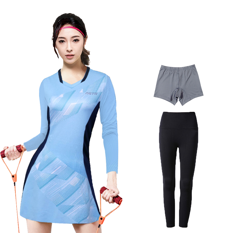 羽毛球服女长袖连衣裙秋冬速干韩国运动套装网乒团购网乒比赛队服