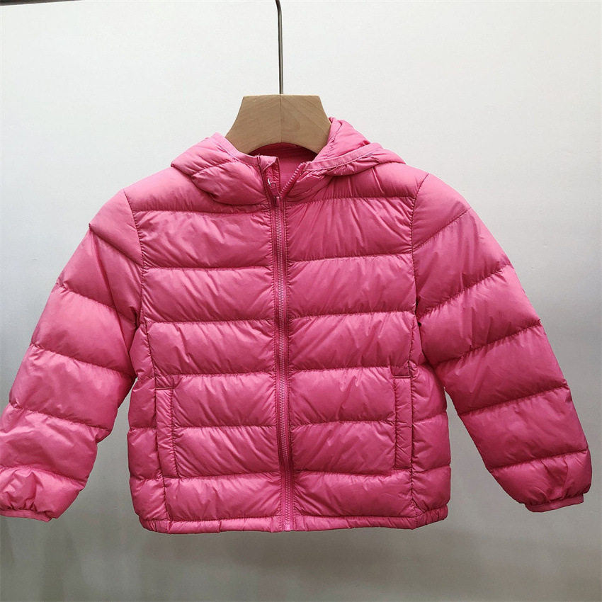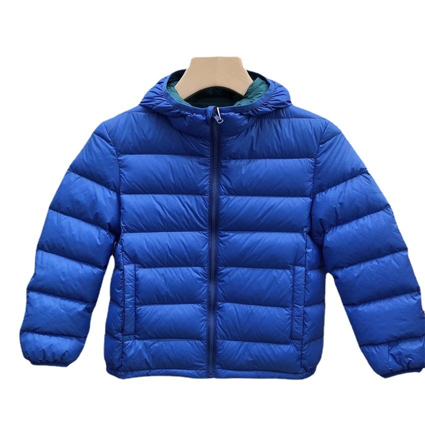 跨境货源童装轻薄款羽绒服男女款连帽短款外套90白鸭绒中大童纯色