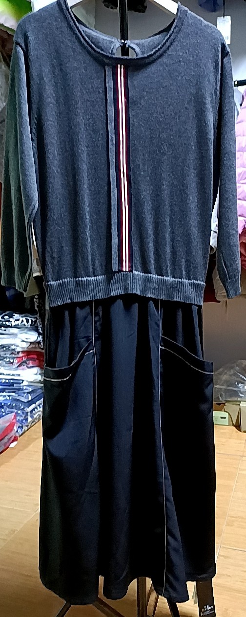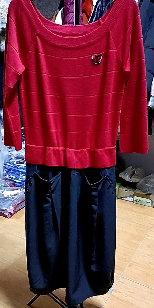 冬季绵羊毛混纺针织拼接网纱裙内搭长款连衣裙女