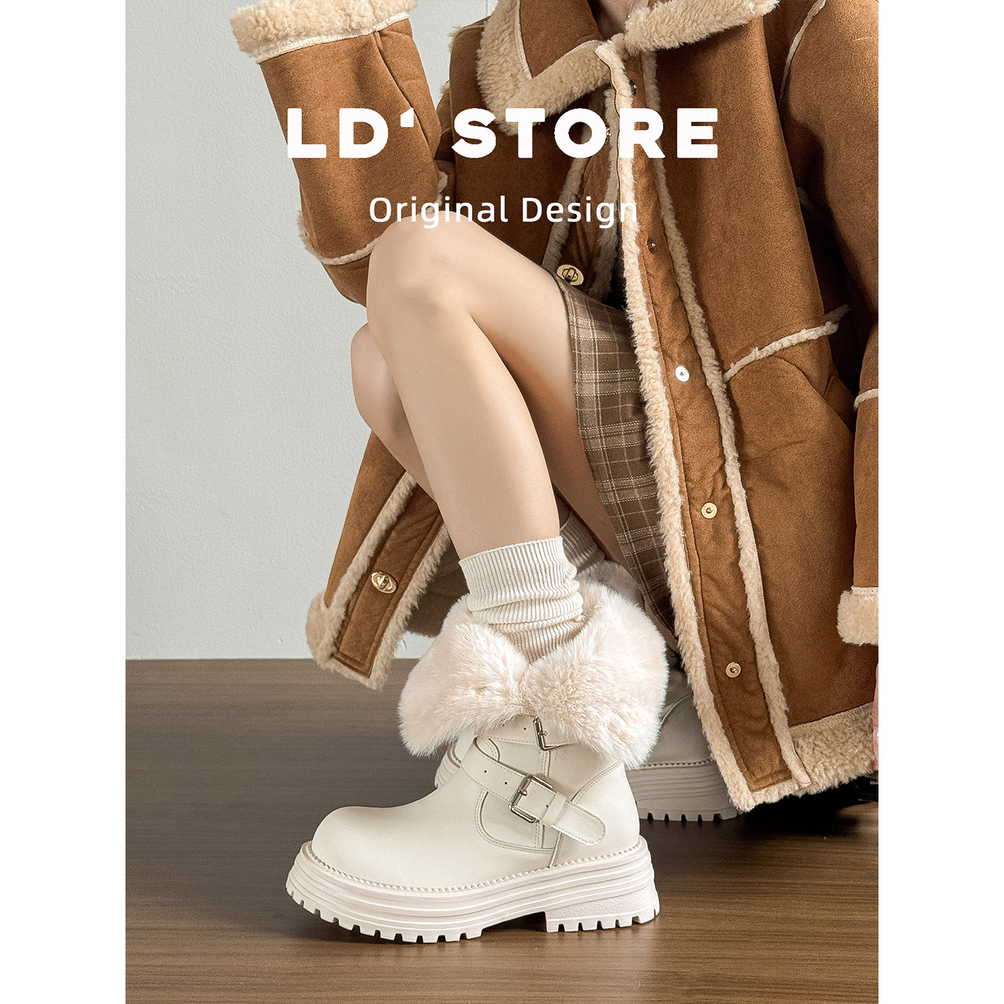 厚底增高两穿白色雪地靴女2025冬季美拉德马丁靴加绒加厚保暖棉鞋