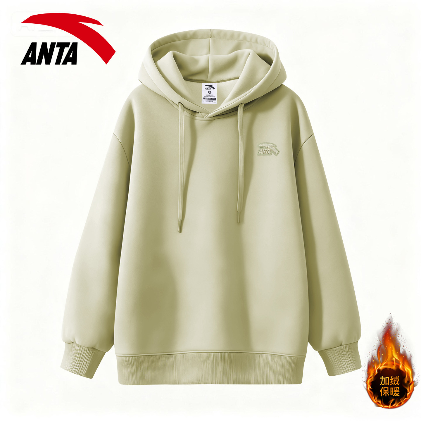 安踏连帽卫衣男款加绒加厚2026新款学生宽松长袖上衣百搭衣服男装