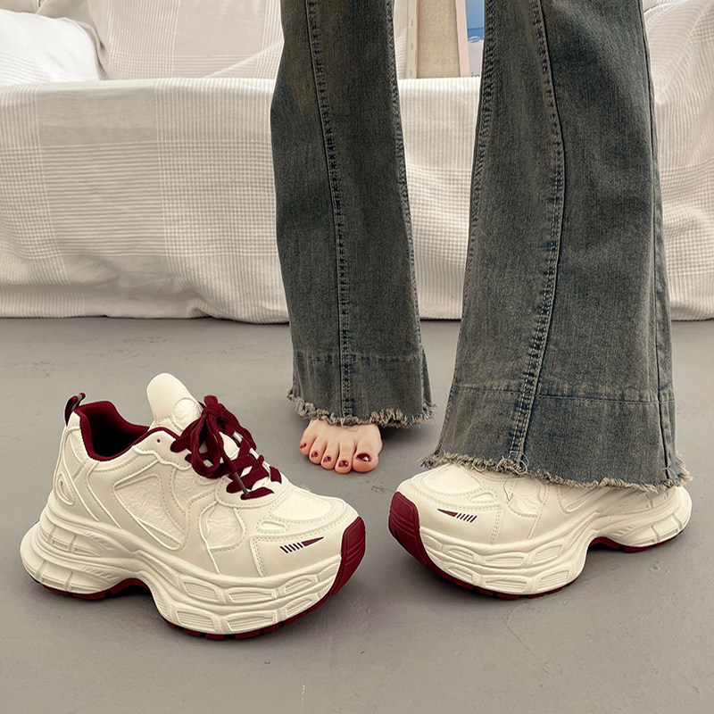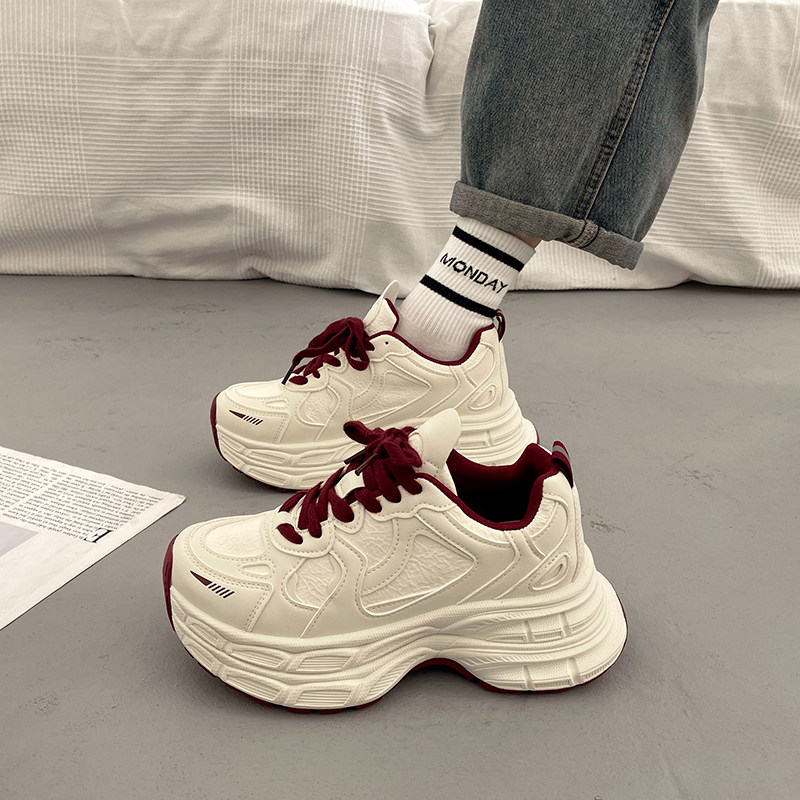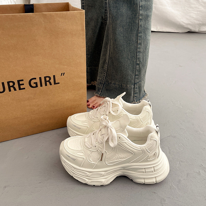 爆款百搭厚底老爹鞋女小个子增高2026超火新款春季白色运动休闲鞋