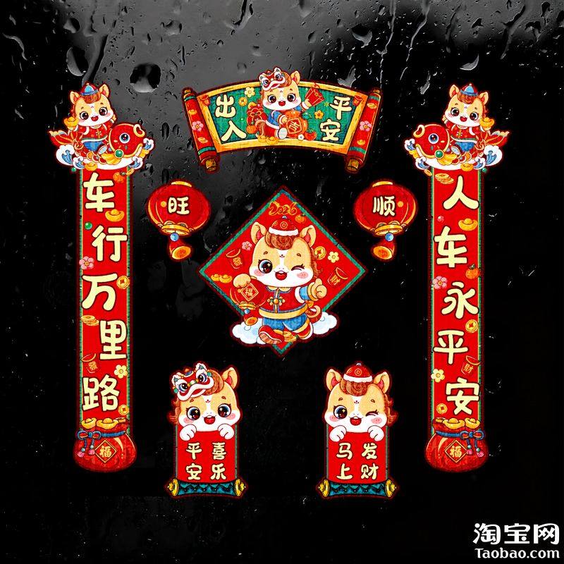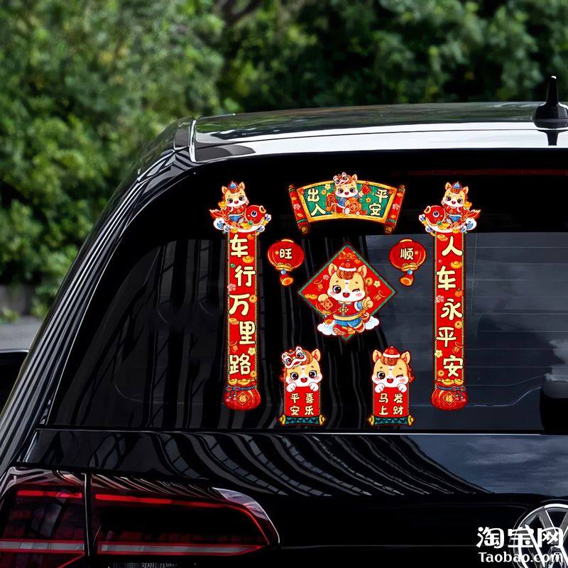 2026马年汽车小对联电动车贴纸车身车窗玻璃装饰创意个性春节贴花