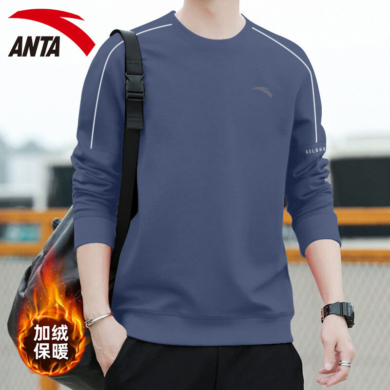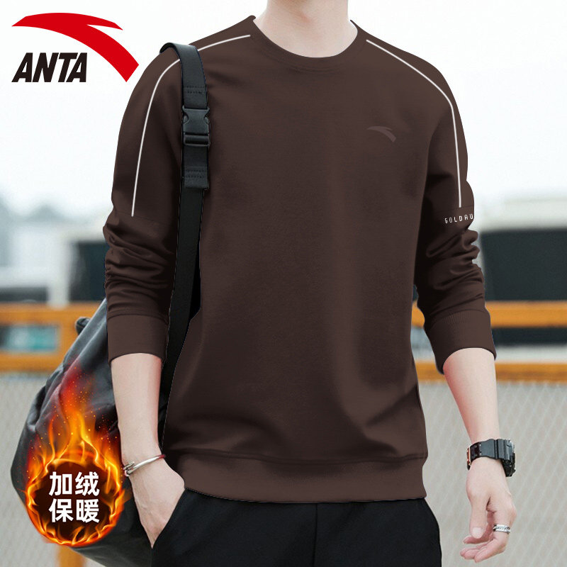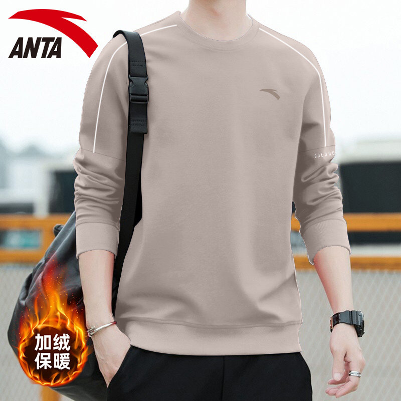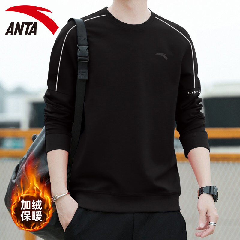 安踏男士卫衣无帽秋冬季2026新款圆领上衣服加绒百搭休闲长袖t恤