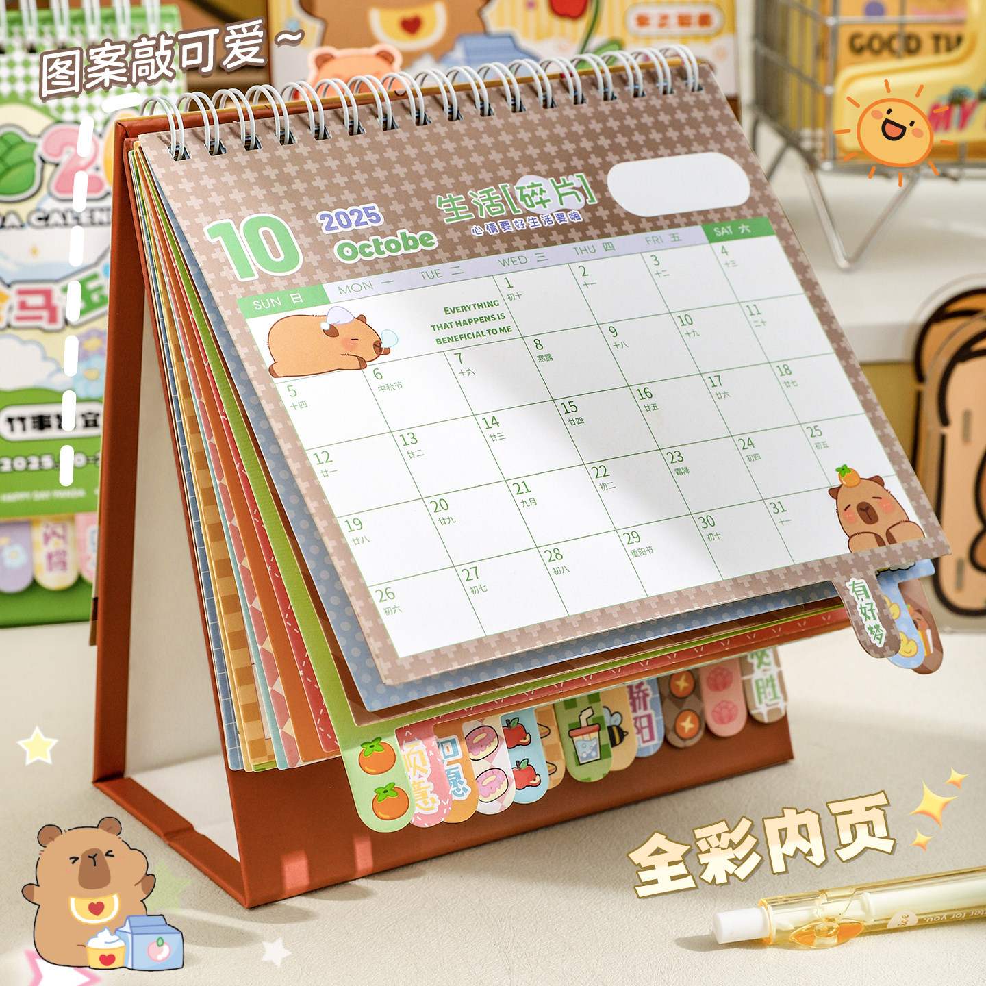 卡皮巴拉台历2026年新款卡皮巴拉日历本马年创意桌面摆件中高考考研倒计时记事本备忘录计划本打卡月历万年历