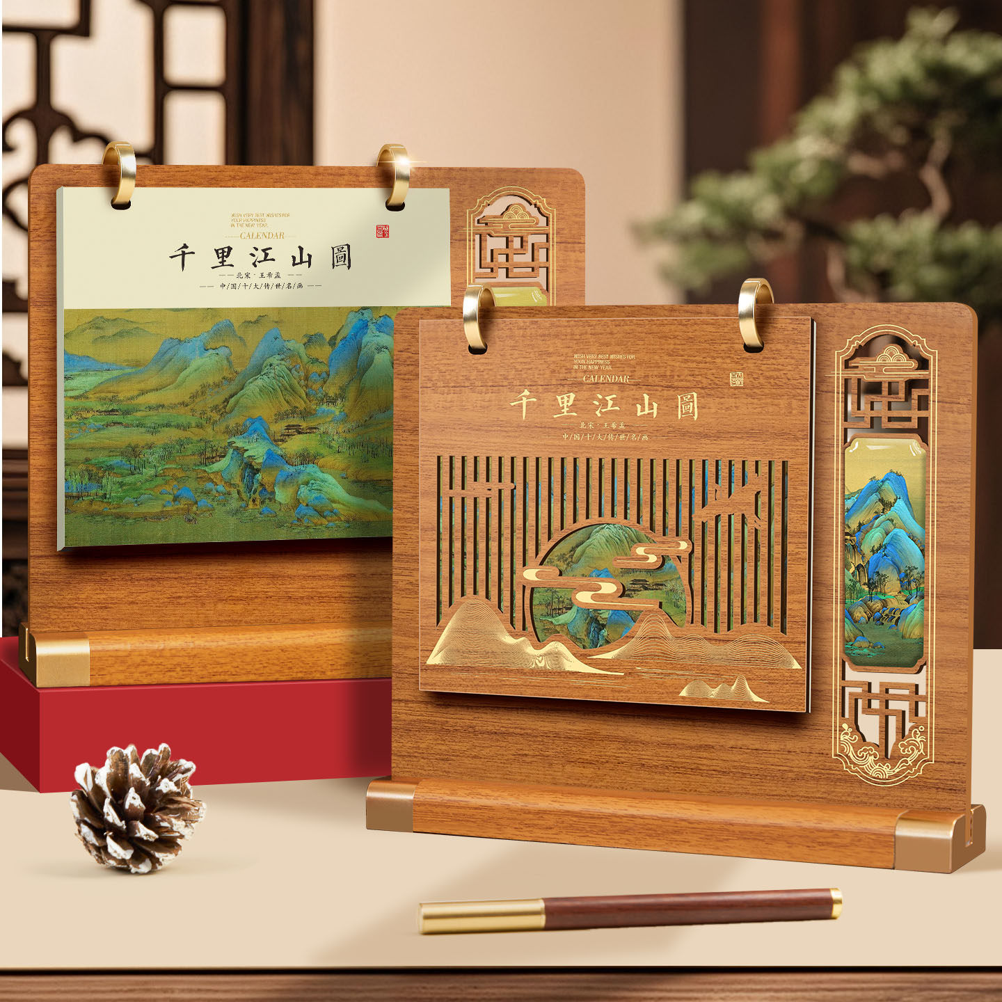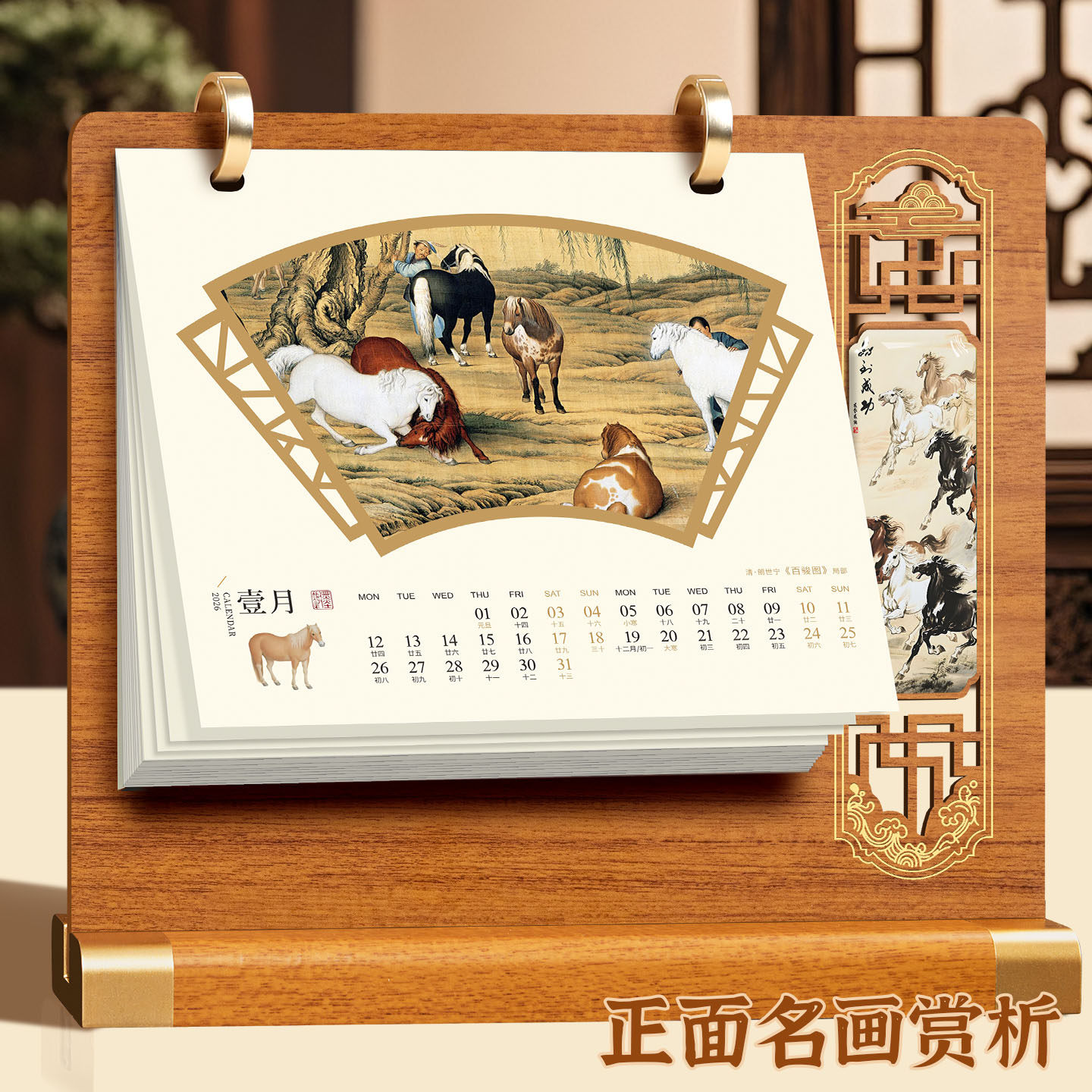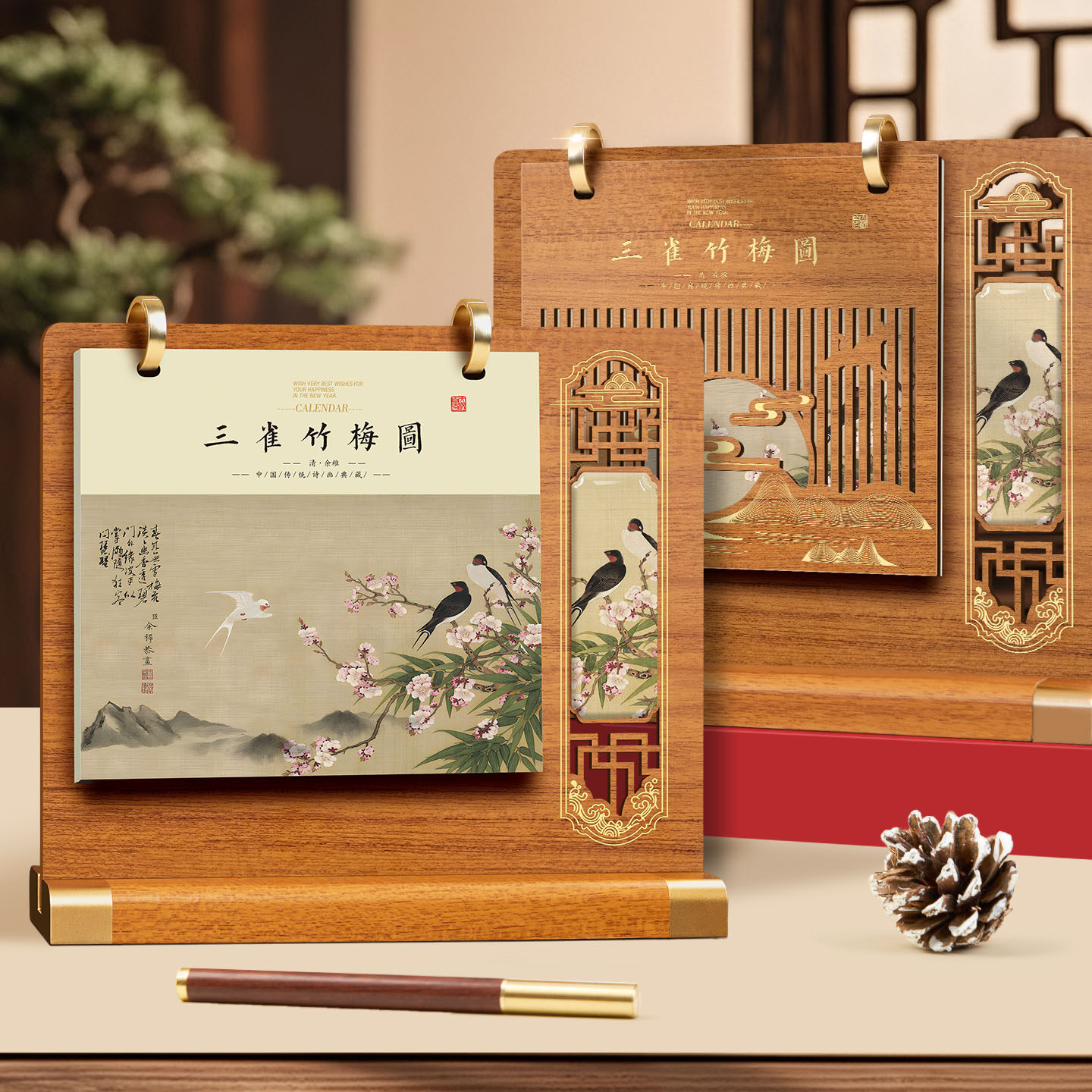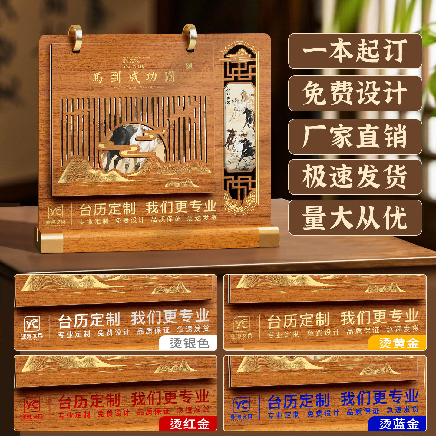 轻奢镂空台历2026新款实木滴塑日历马年创意桌面摆件订做商务办公简约文艺红木月历公司定制烫金定做企业Logo