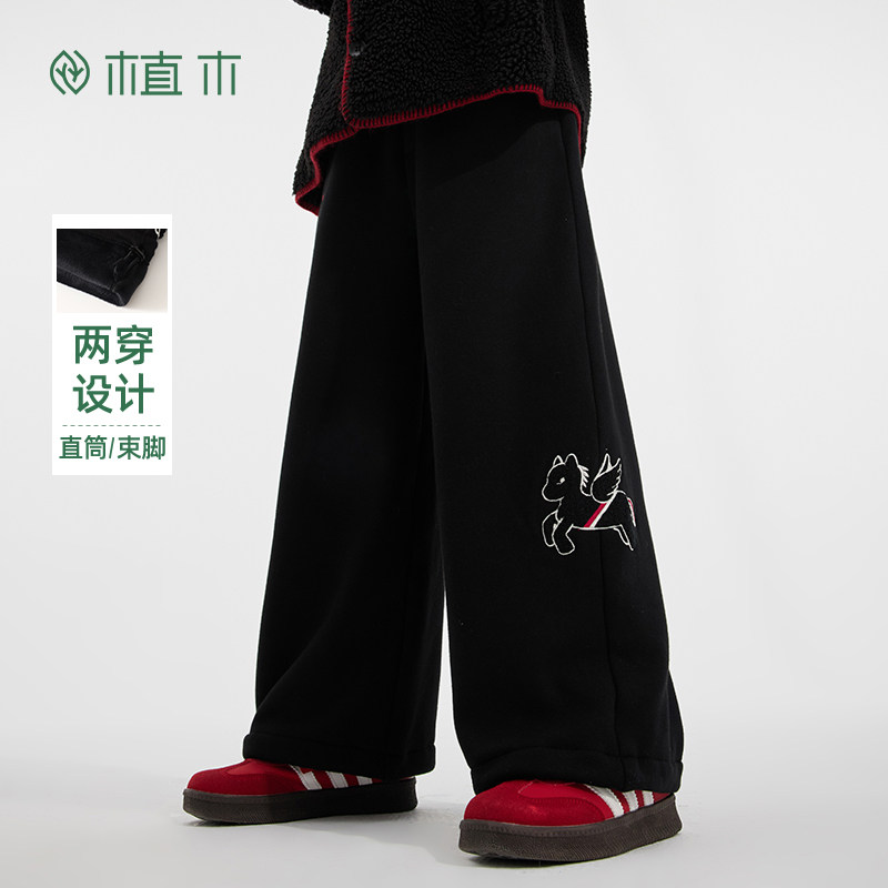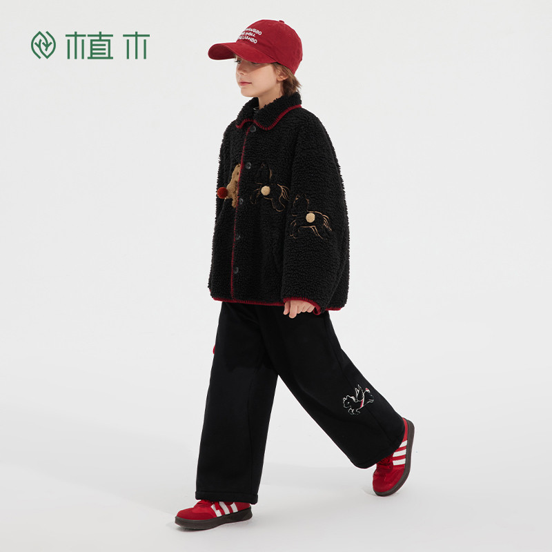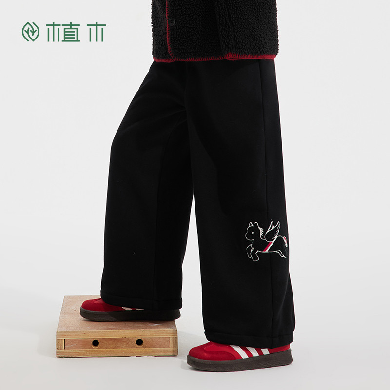 311线报网描述:男童驿马毛巾绣加绒直筒针织裤