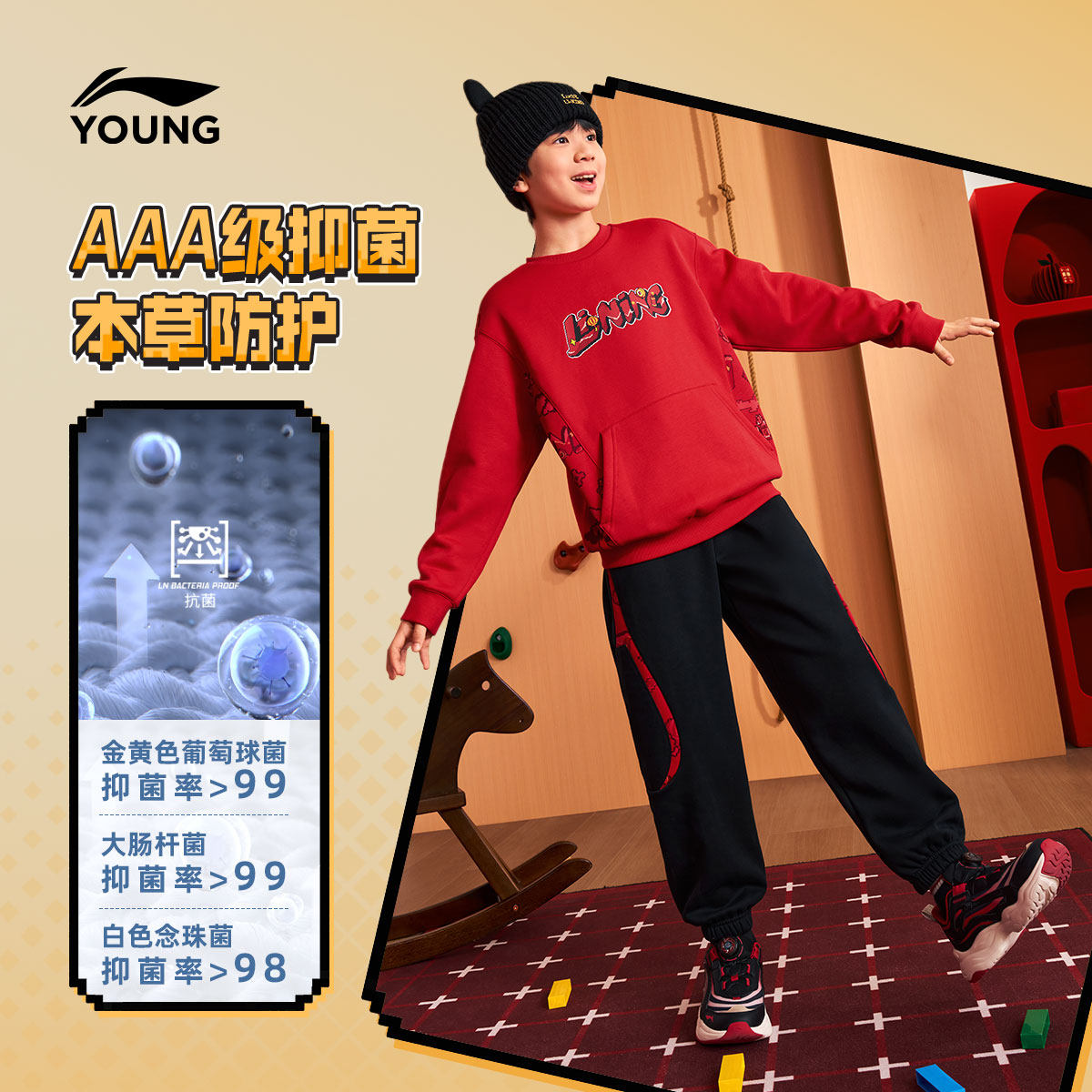 新年套装|李宁儿童加绒冬装2026马年本命年红色衣服女卫衣男童装