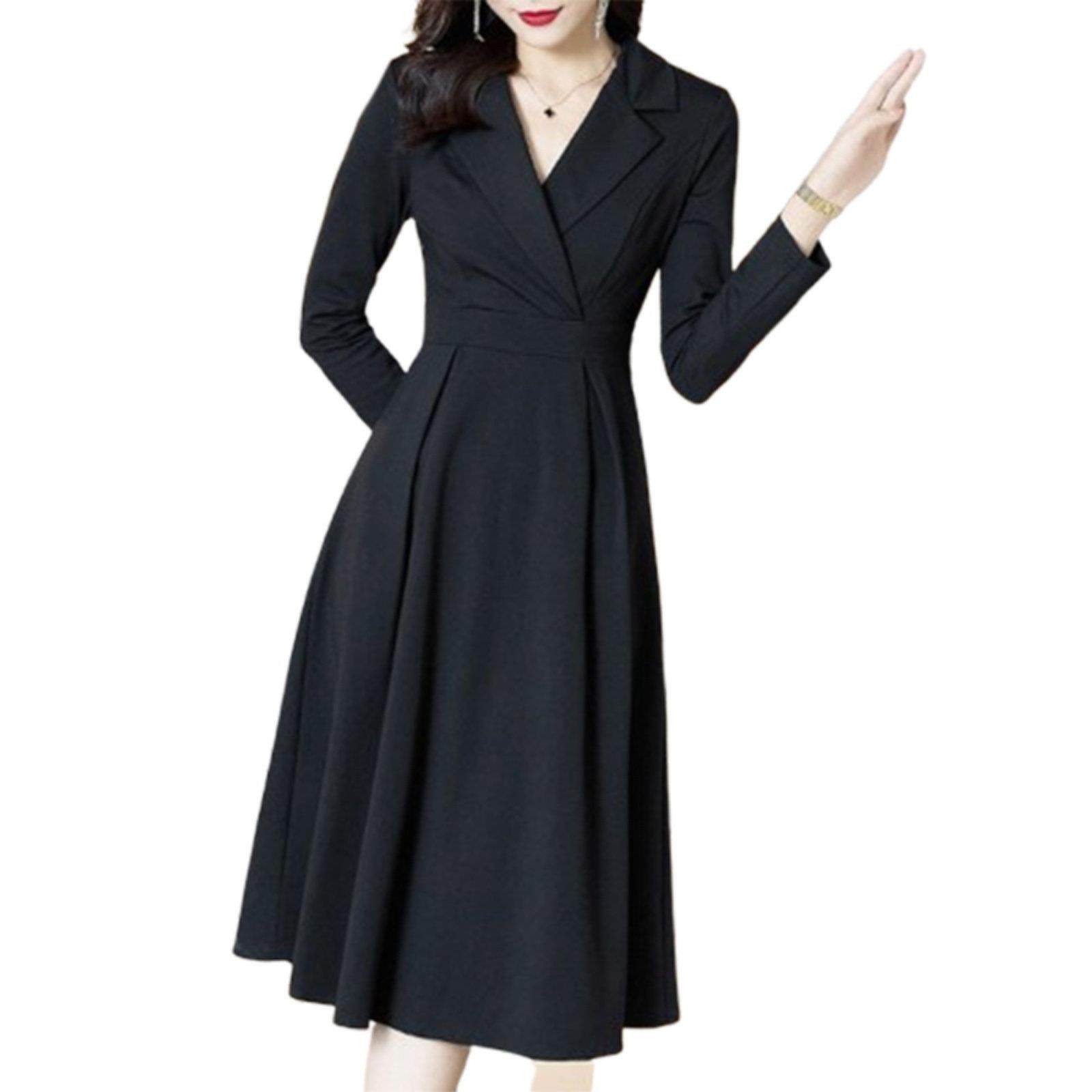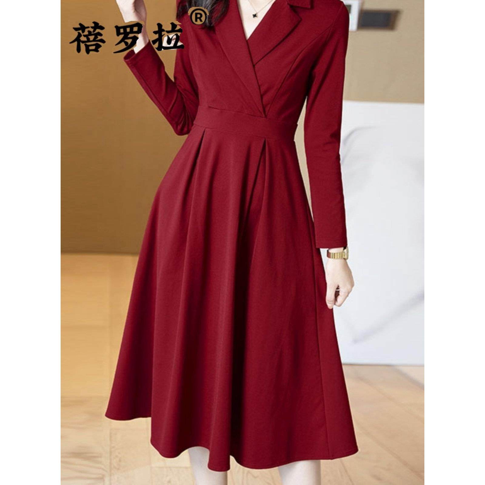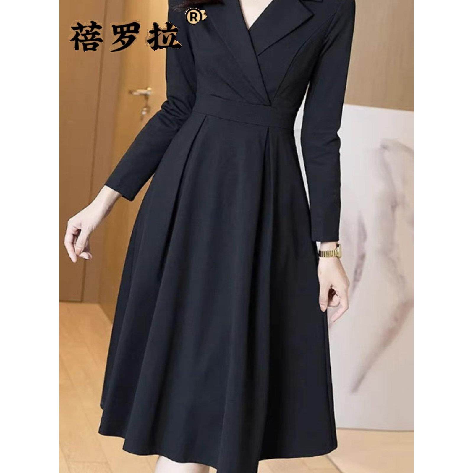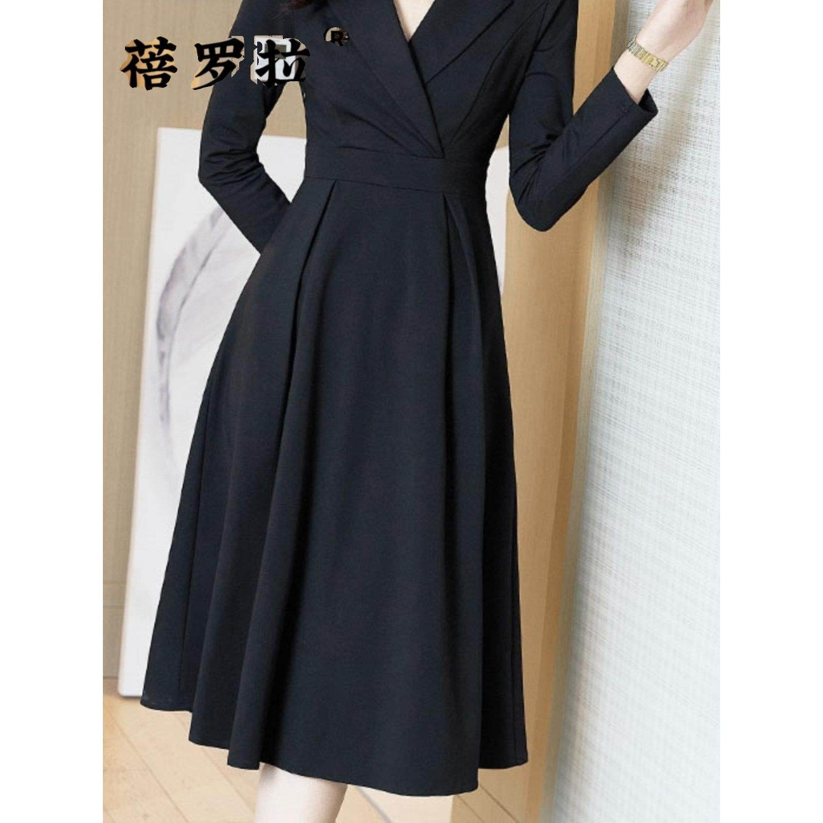 蓓罗拉黑色2025春季新款连衣裙女中长款高级感小个子长袖收腰修身