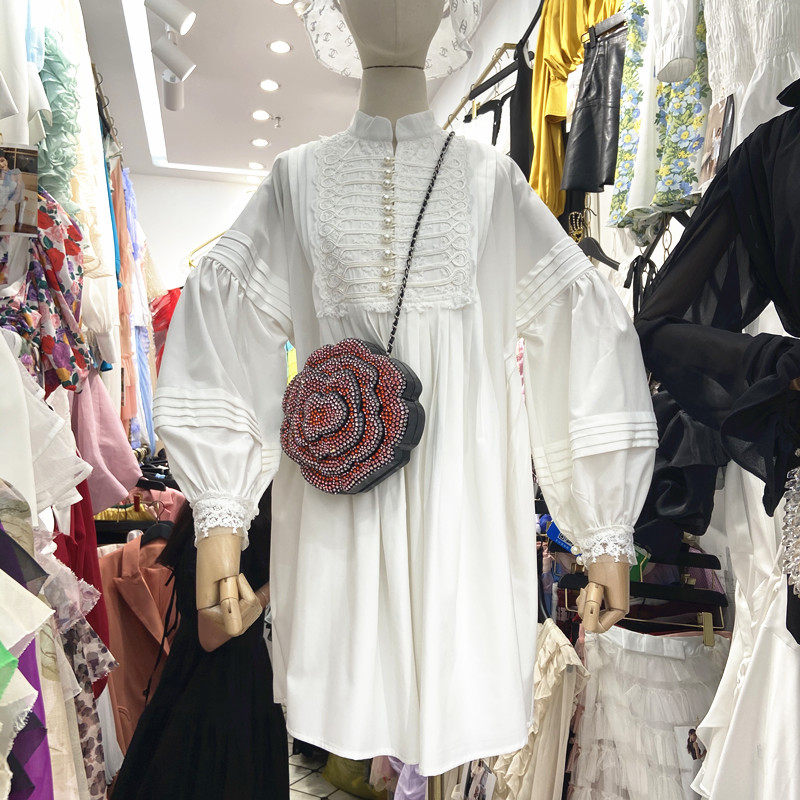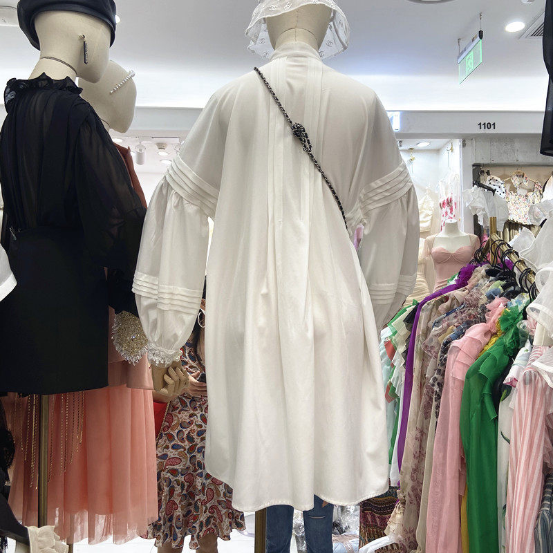 2025早秋新款中长款宽松长袖白色衬衫女很仙的法式连衣裙娃娃衫潮