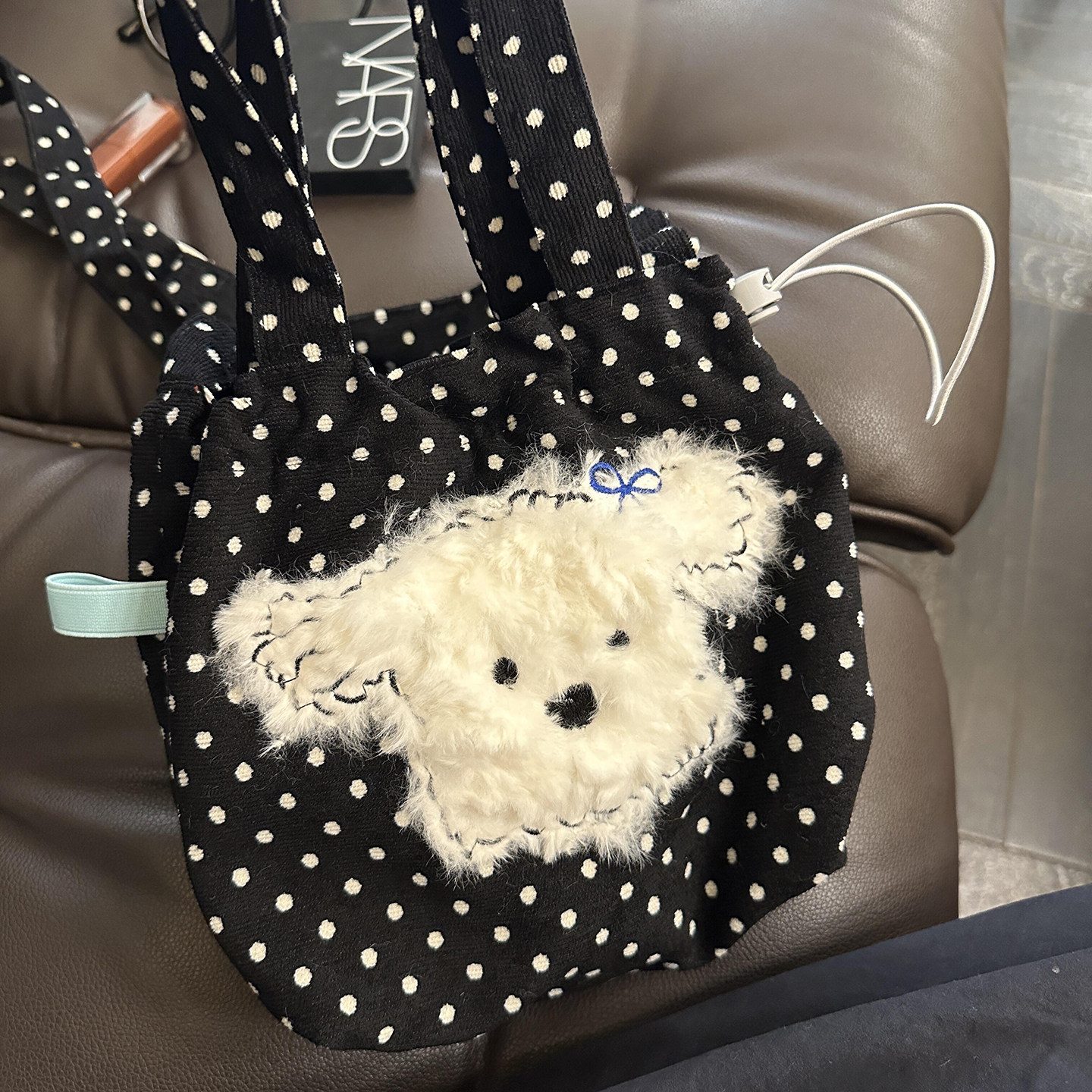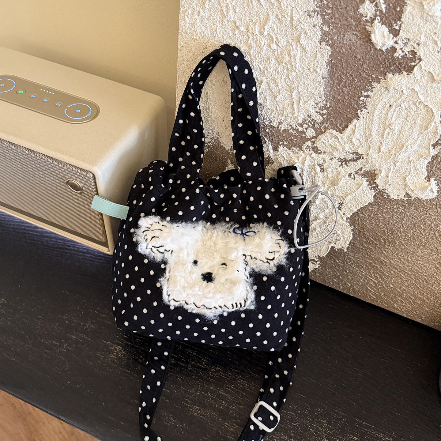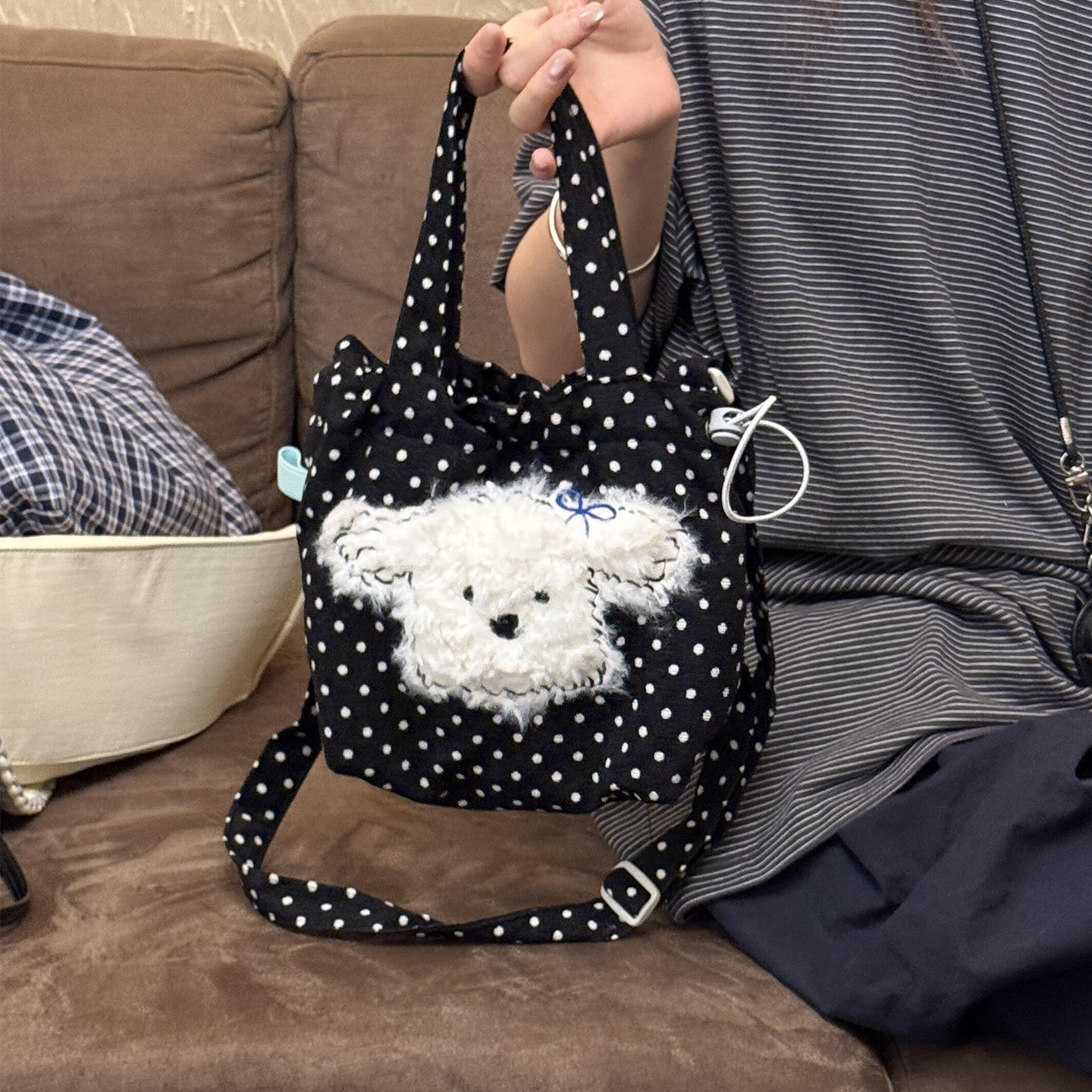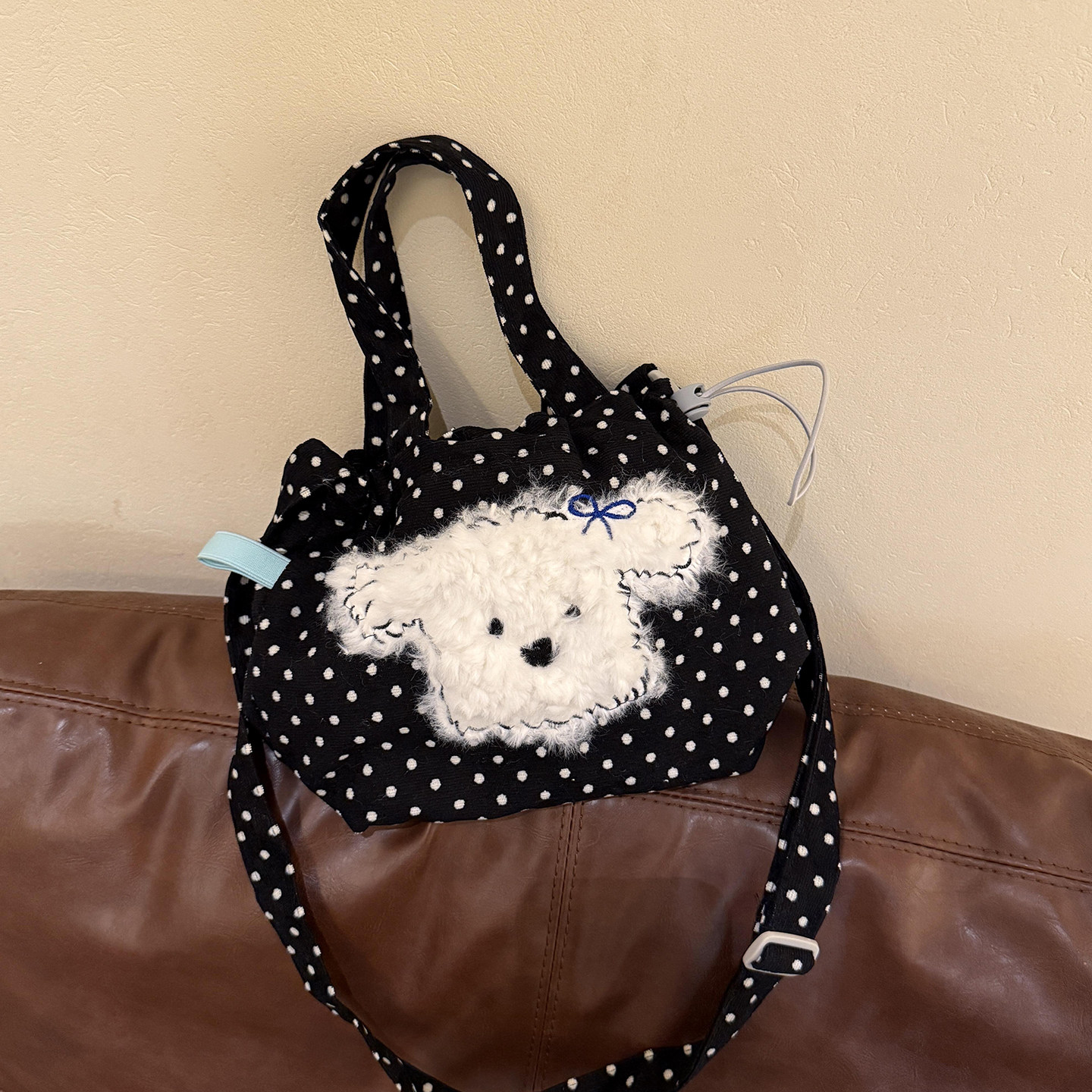 黑色波点小狗帆布包韩系慵懒风通勤包包女款大容量手提单肩斜挎包