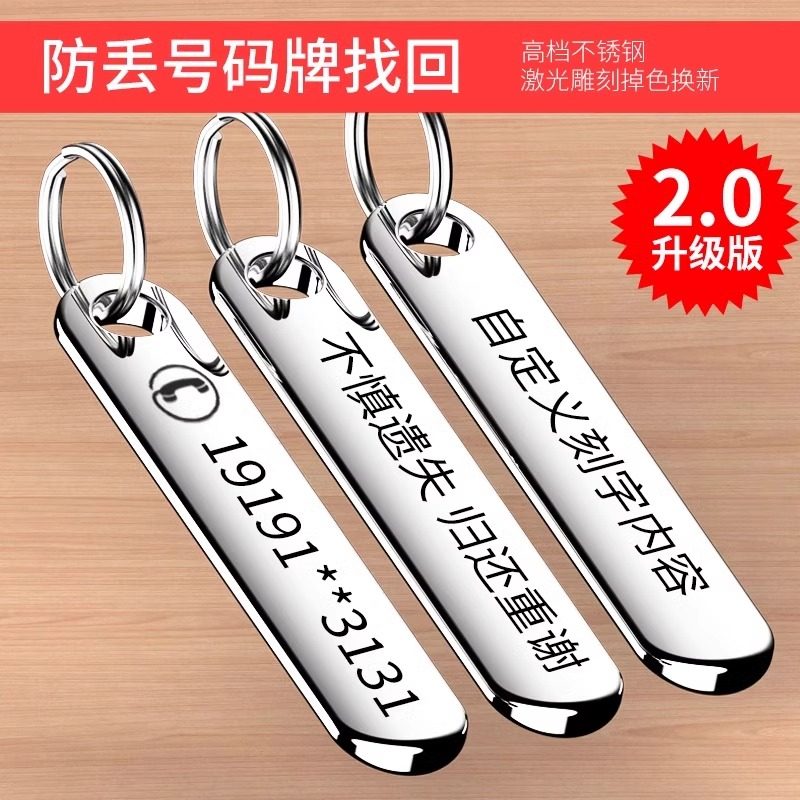 防丢号码牌汽车钥匙扣电话手机男士女环链挂件不锈钢挂饰定制刻字