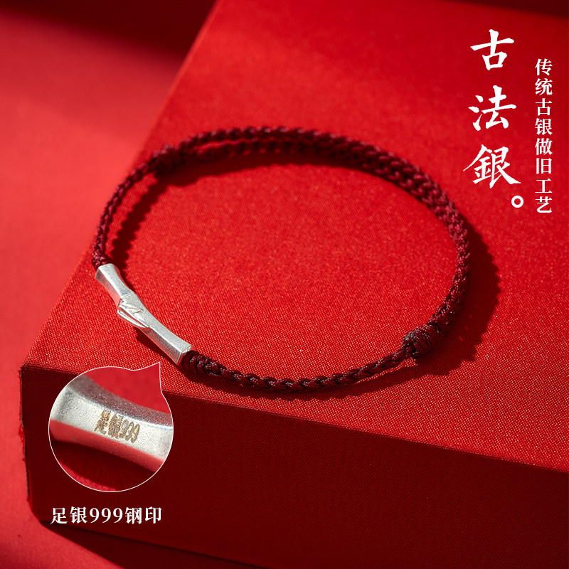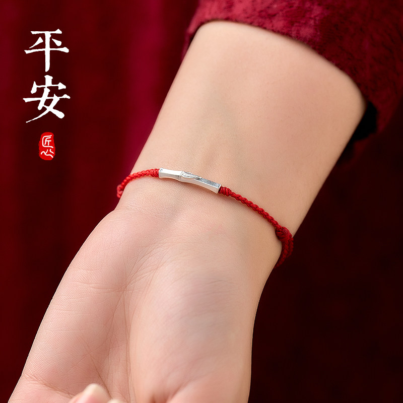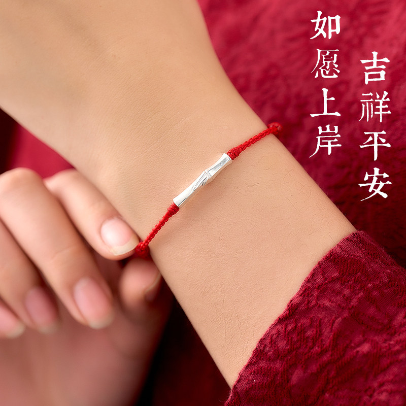 上岸竹节手链999纯银金榜题名红手绳脚链中高考研试好运祝福礼物