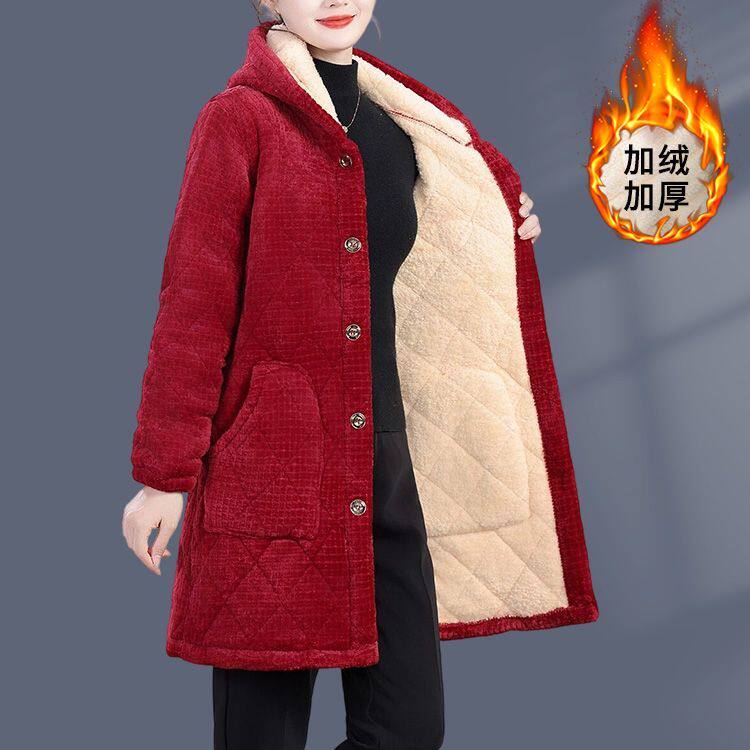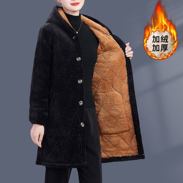 罩衣外套女加绒加厚中长款冬季棉袄冬天女士成人大人时尚新款保暖