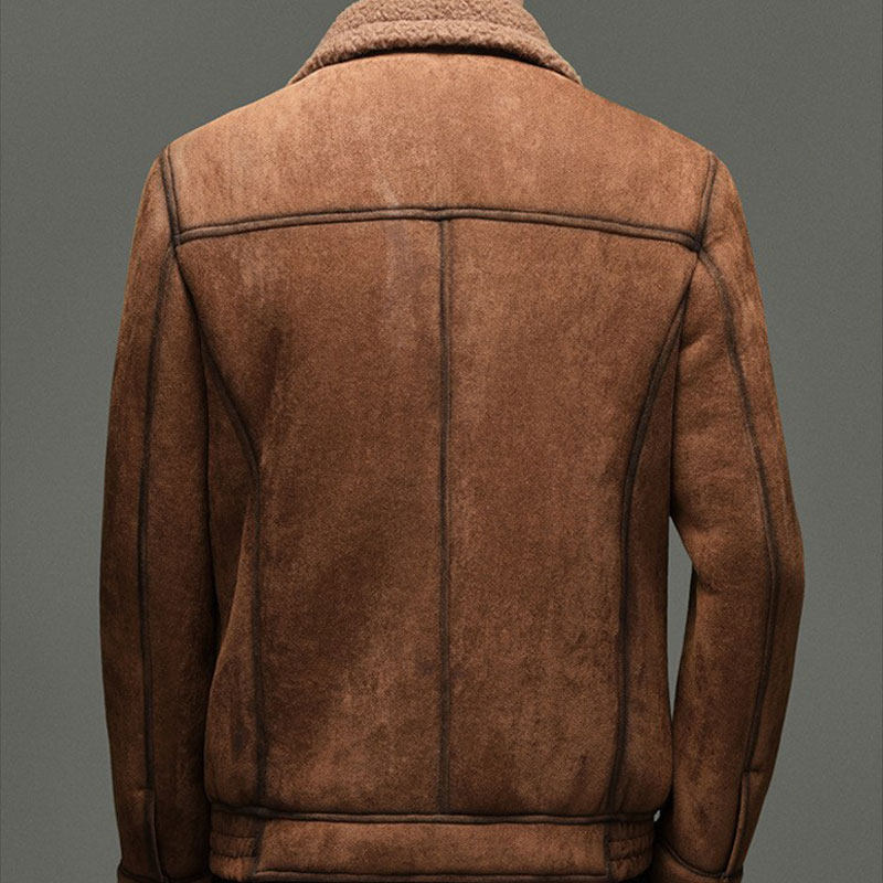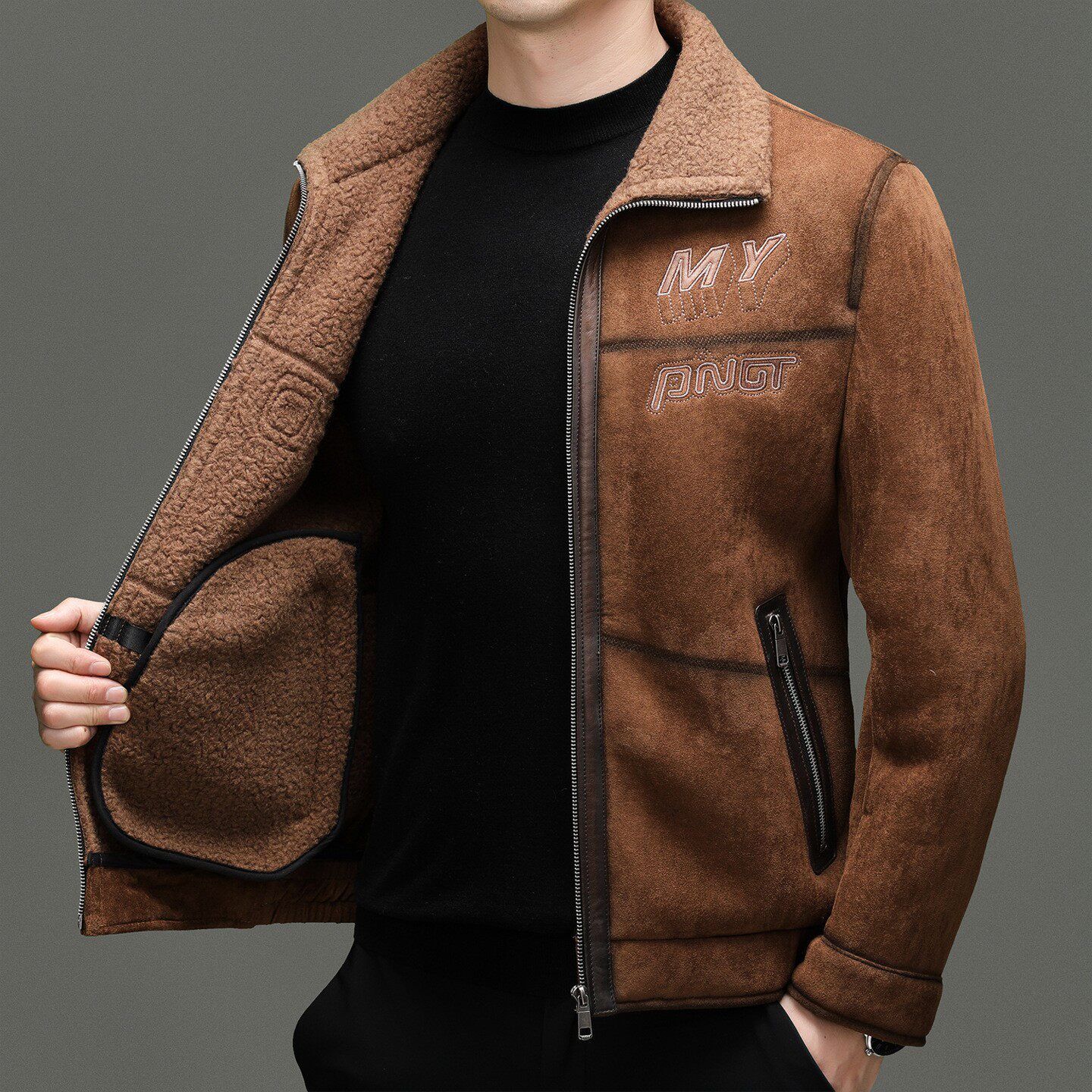 海宁男皮毛一体羊毛真皮皮衣短款翻领拉链保暖外套2026新款夹克