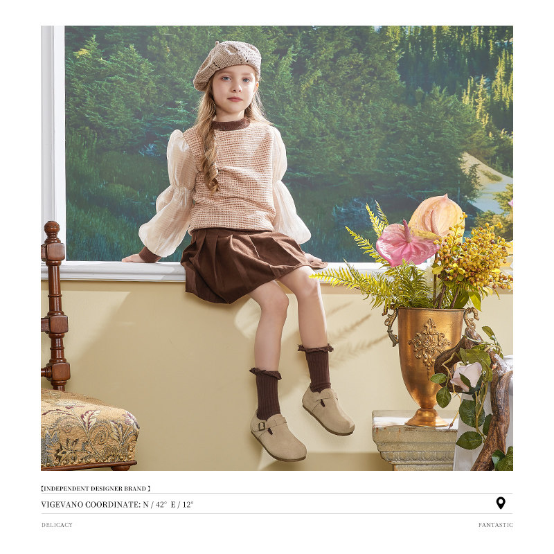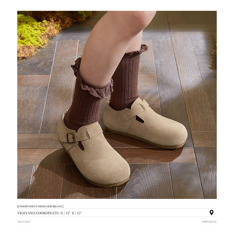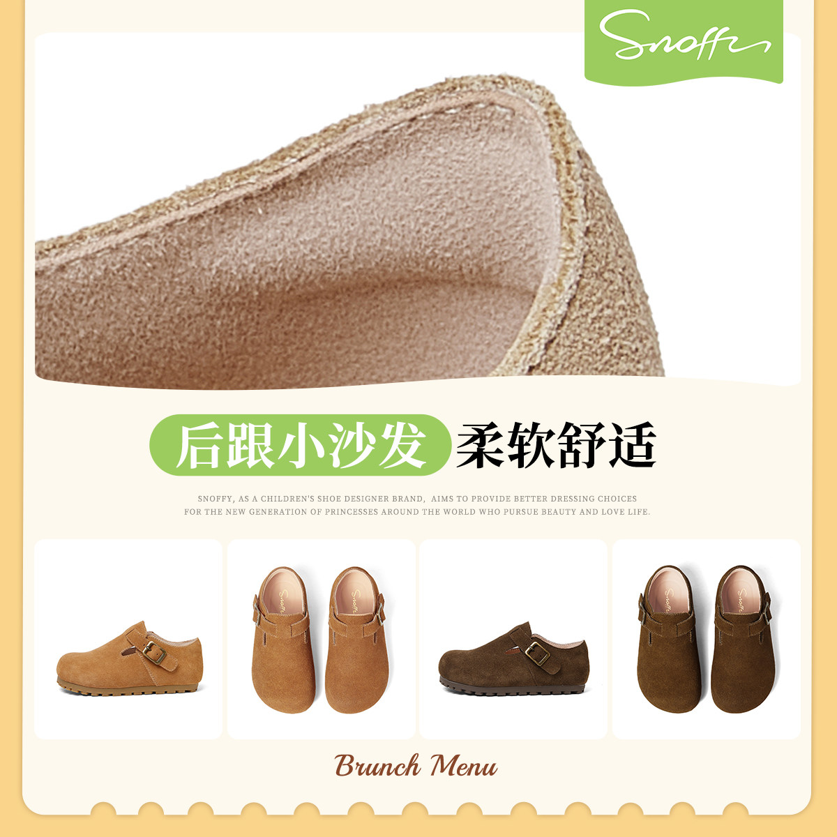 斯纳菲儿童勃肯鞋女童皮鞋2026春秋新款真皮软底防滑棉鞋宝宝鞋子