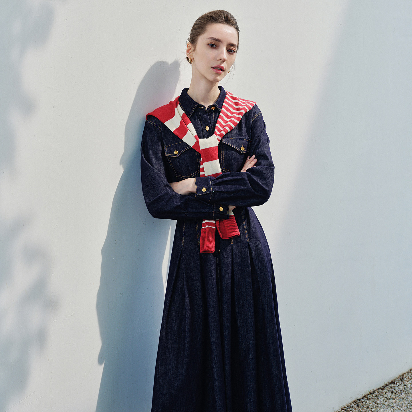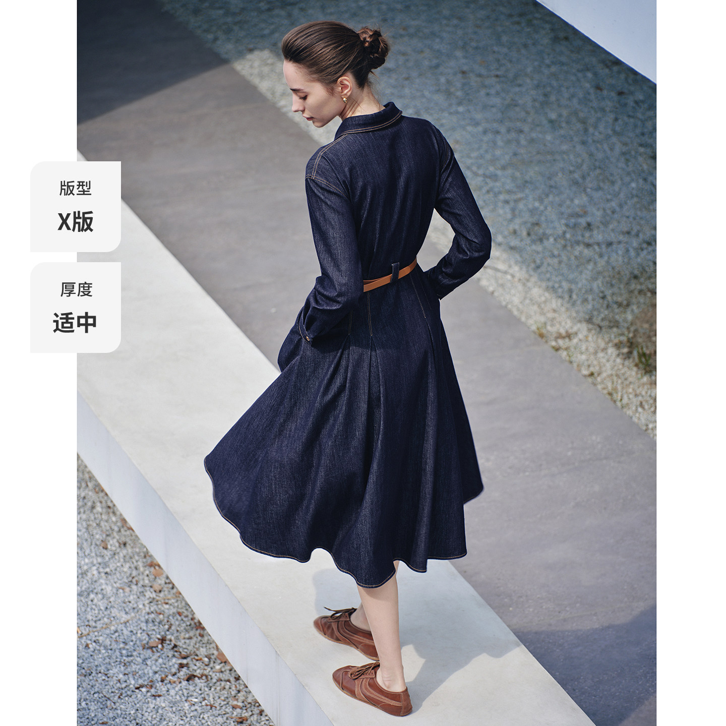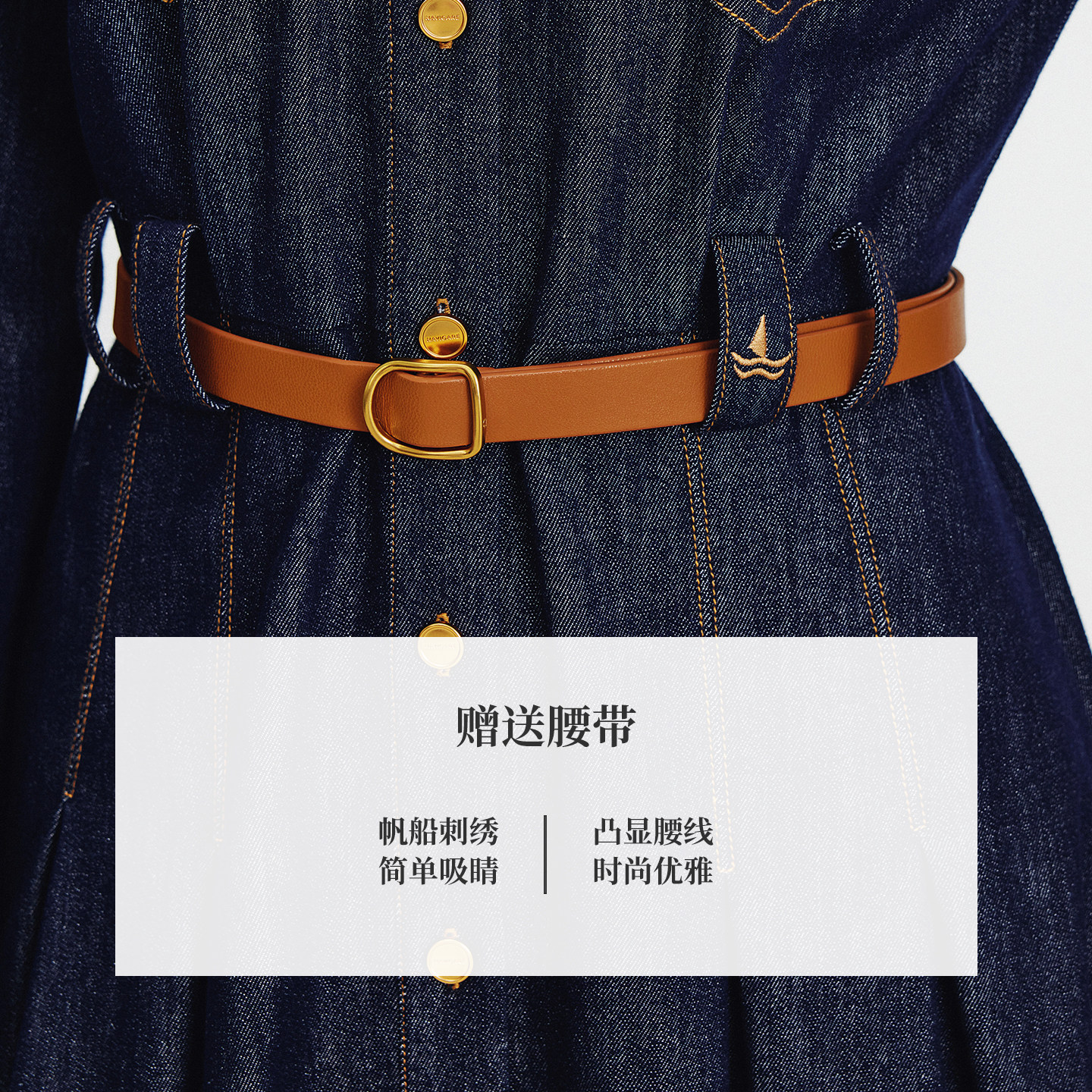 Navigare意大利小帆船长袖连衣裙女2026春季新款轻奢高级感牛仔裙